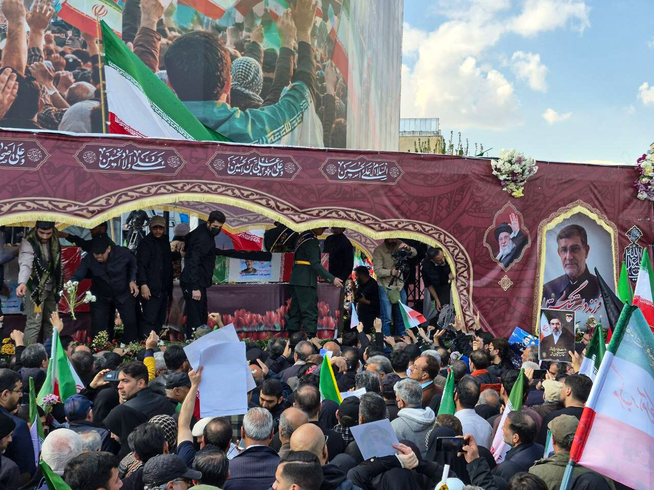 Törene katılan binlerce İranlı, ABD ve İsrail karşıtı sloganlar atarken, Tengsiri'nin cenazesi araçla İnkılap Meydanı'na getirildi. Bu sırada birçok kişinin gözyaşlarına hakim olamadığı görüldü.