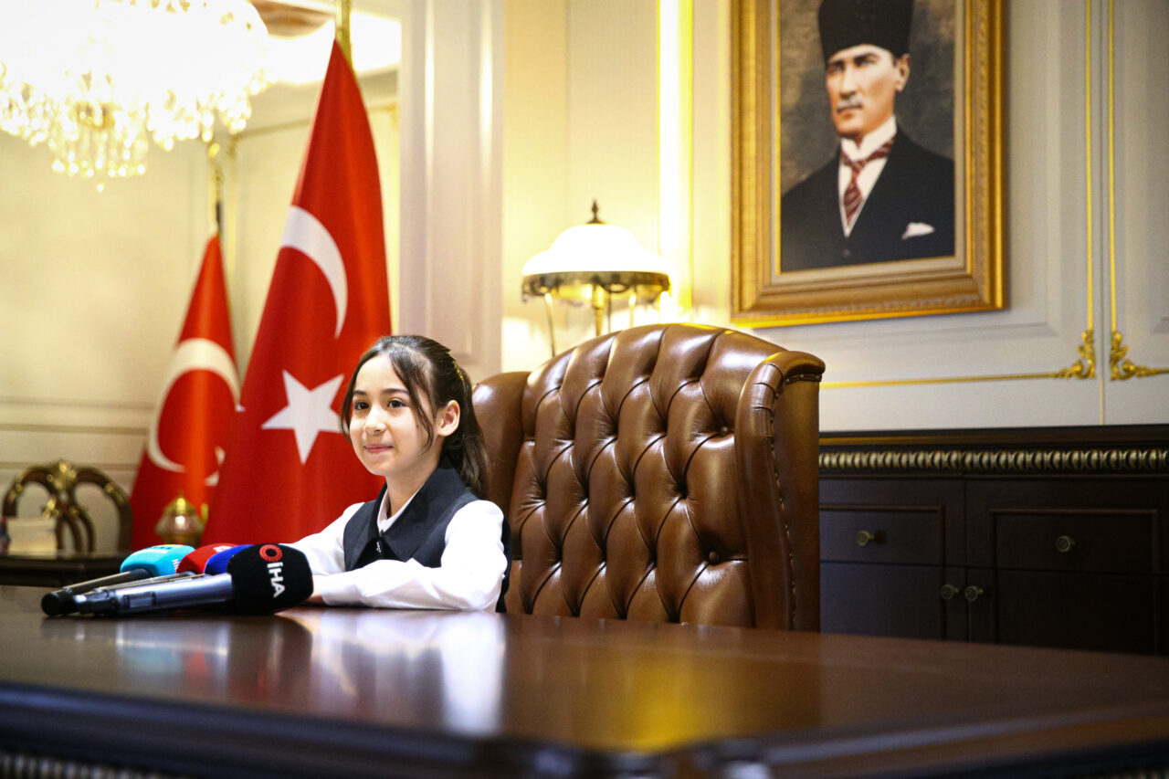 Melike Aden Alptürk de 23 Nisan Ulusal Egemenlik ve Çocuk Bayramı dolayısıyla temsili olarak Adana Valiliği makamında oturmaktan mutluluk duyduğunu dile getirdi.
