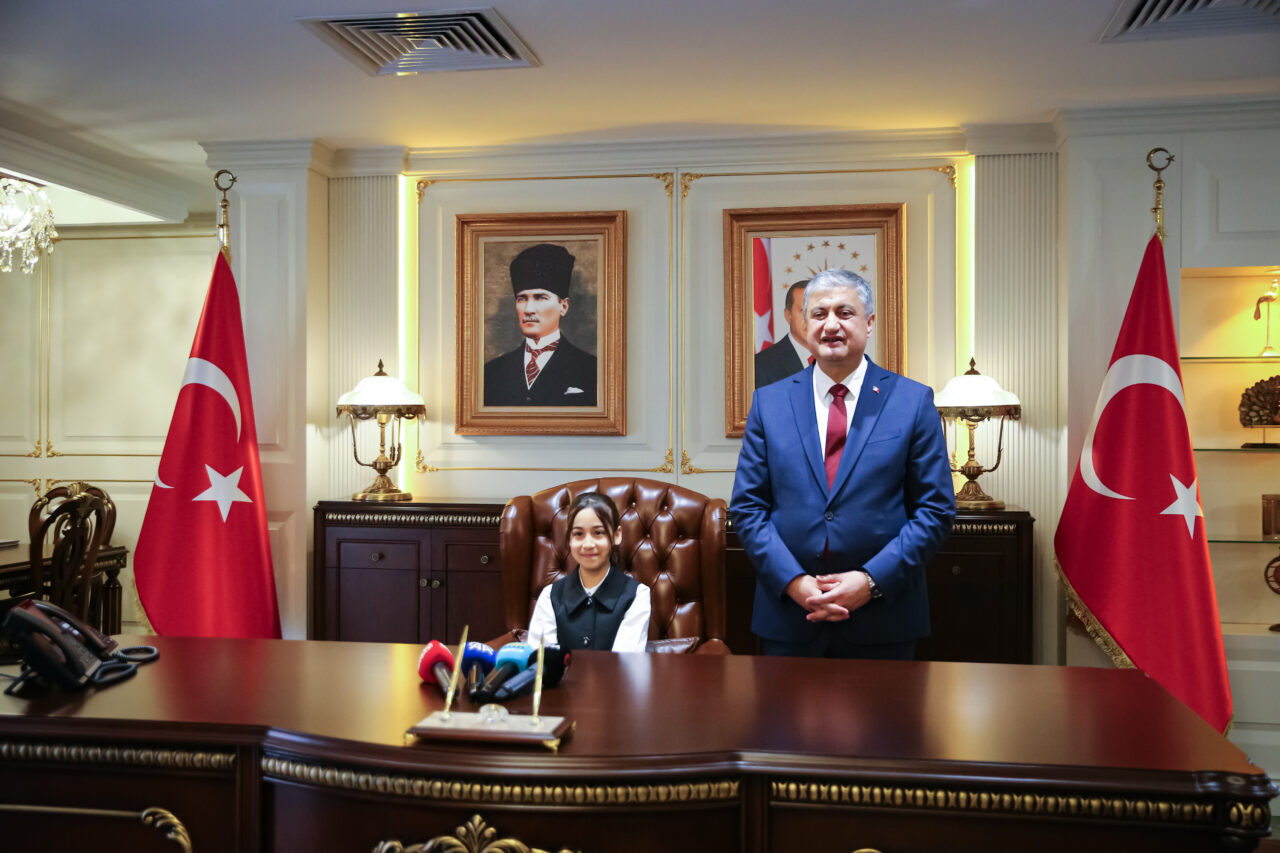 Valilikten yapılan açıklamaya göre, çocukların bayramını kutlayan Masatlı, makam koltuğunu temsili olarak öğrencilerden Mina Meryem Büyükaşık'a bıraktı.
