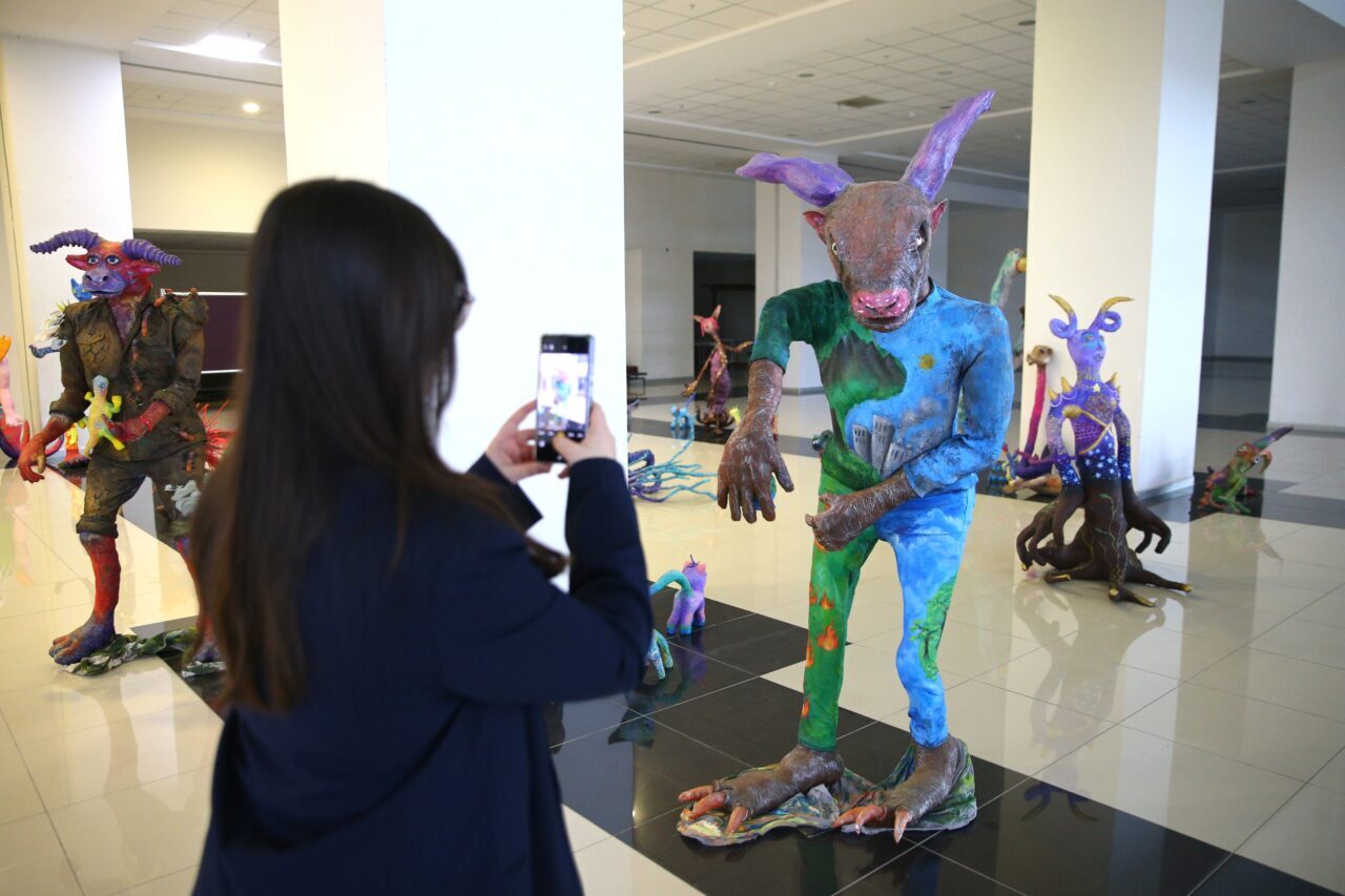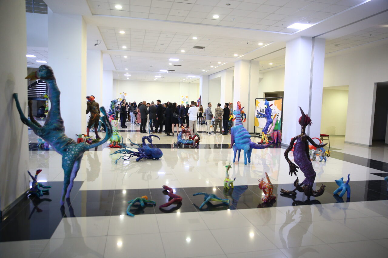 Konuşmaların ardından öğrencilerin geri dönüşüm malzemeleriyle yaptıkları 110 eserin yer aldığı "Doğanın Koruyucu Korkulukları" sergisi açıldı.