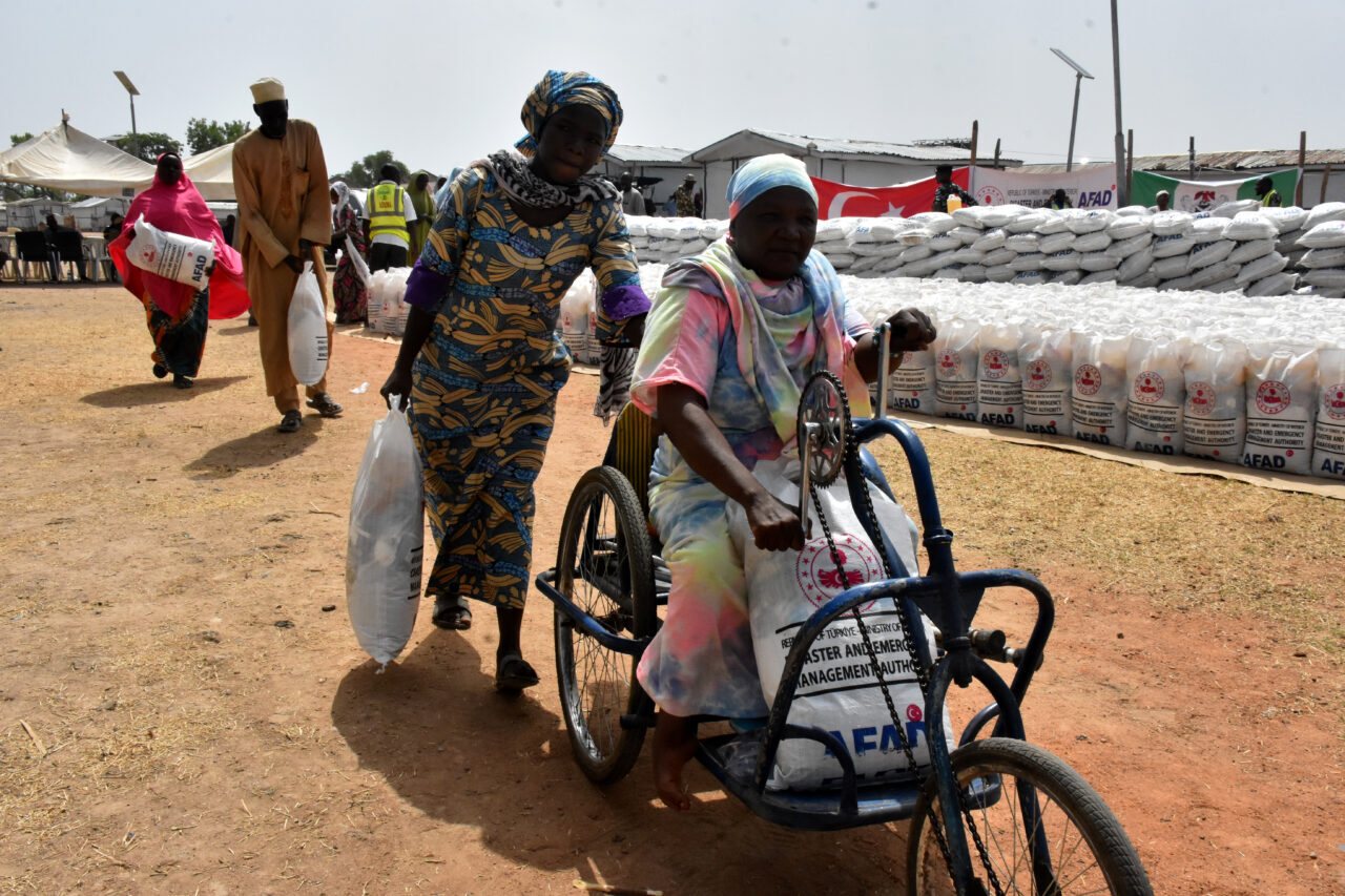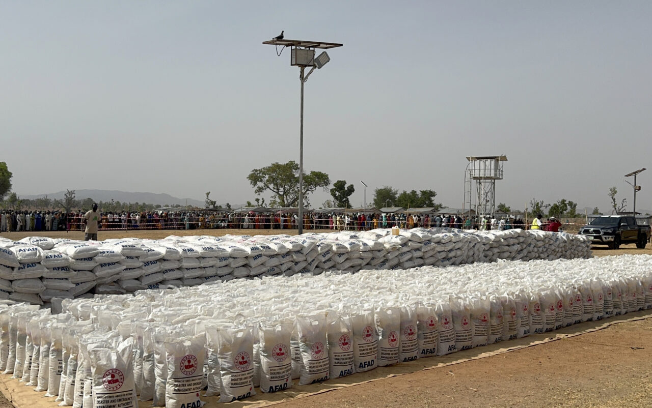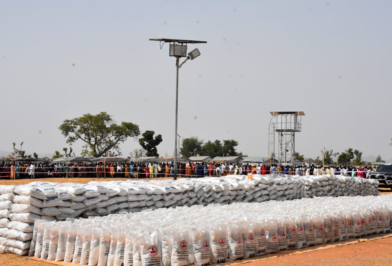 Birleşmiş Milletler (BM) ile koordinasyon içinde yürütülen yardım programı çerçevesinde gönderilen gıda malzemeleri, Nijerya'nın Adamawa eyaletinin başkenti Yola yakınlarındaki Malkohi Yerinden Edilmiş Kişiler Kampı'nda dağıtıldı.