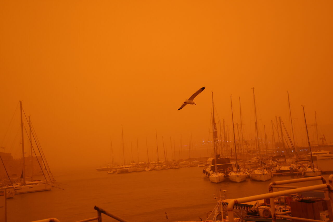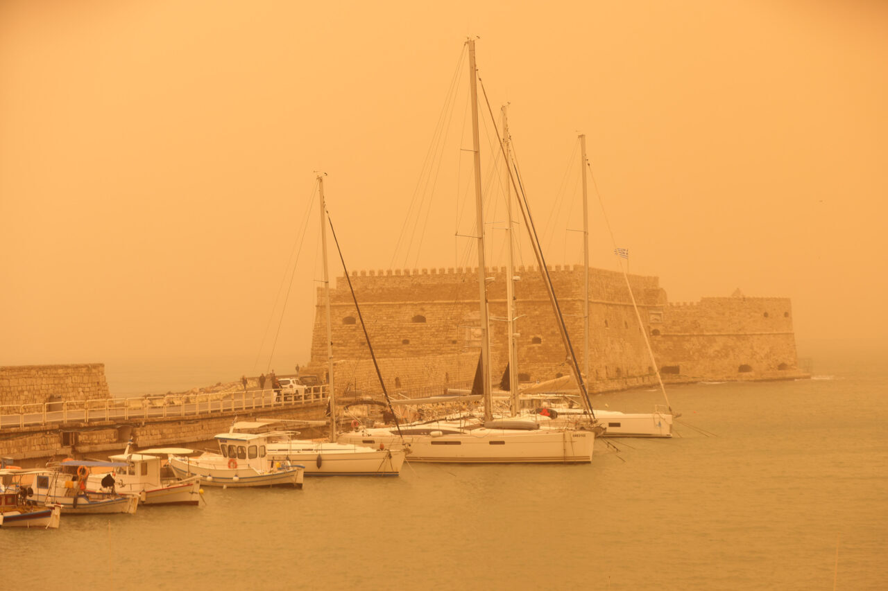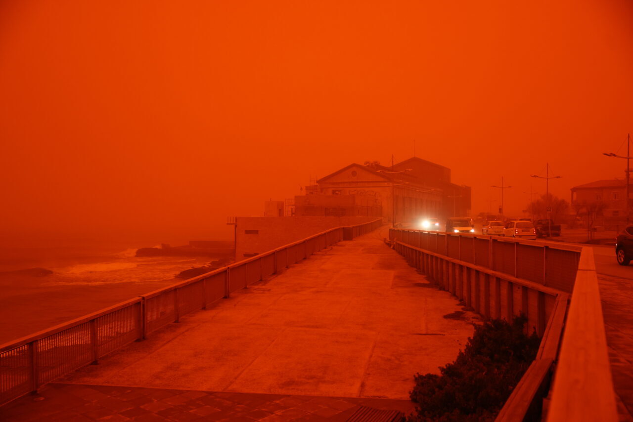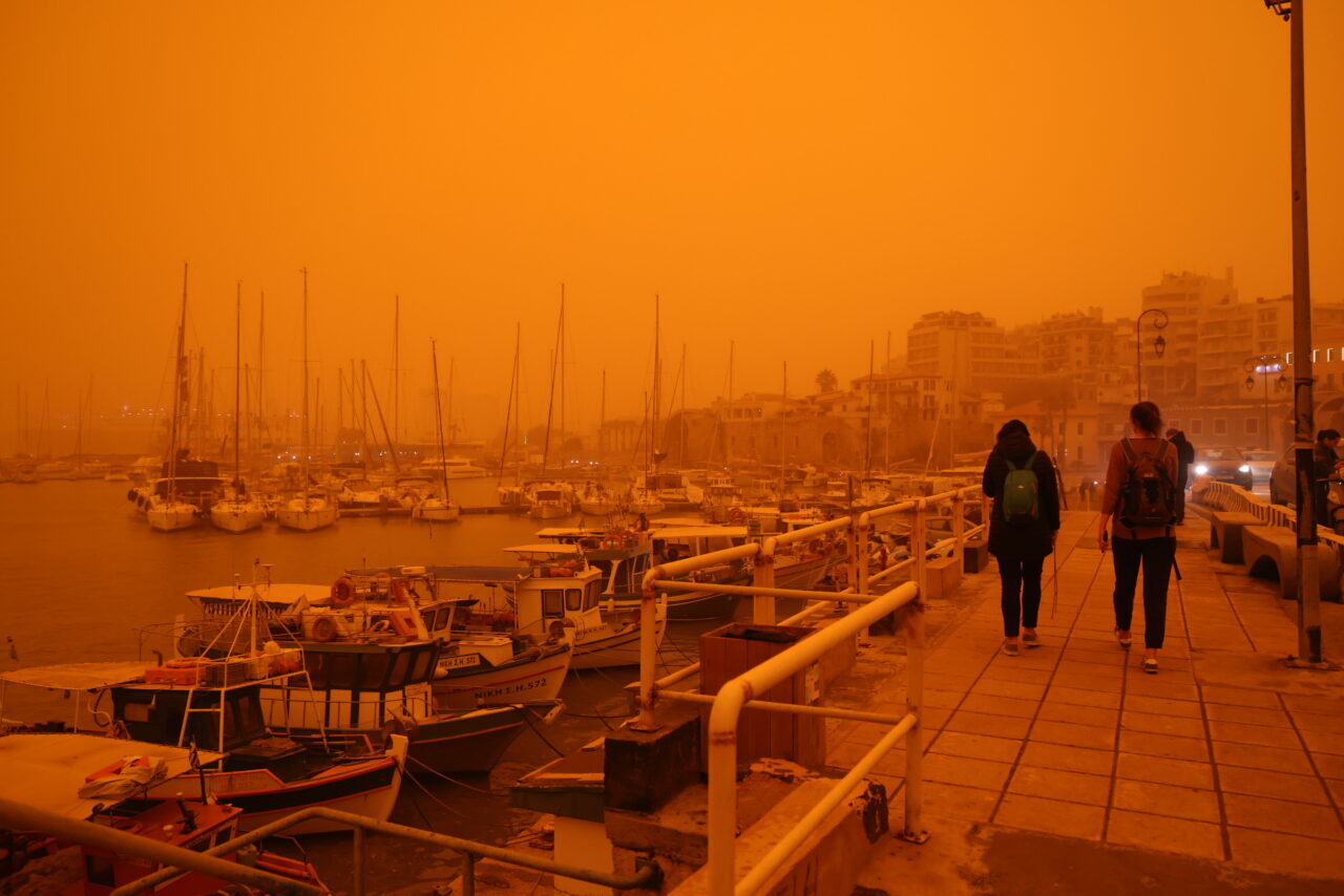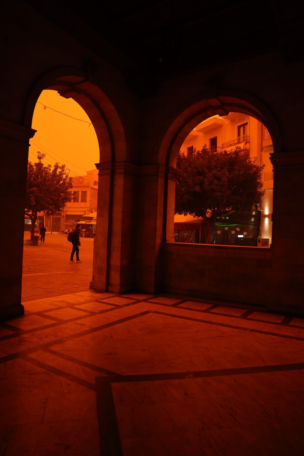 ATİNA (AA) – Yunanistan genelindeki kötü hava koşulları devam ederken, Girit Adası’nda gökyüzü Afrika'dan gelen çöl tozu nedeniyle kırmızıya büründü.