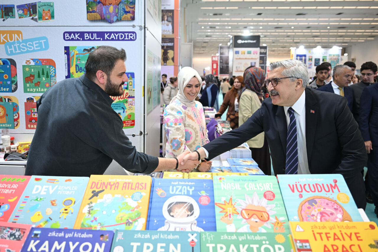 ATO Congresium'da düzenlenen fuarda, yayınevlerinin kurduğu stantları gezen Yayman, kitapları inceledi, yayınevi sorumluları ve fuara gelen vatandaşlarla sohbet etti.