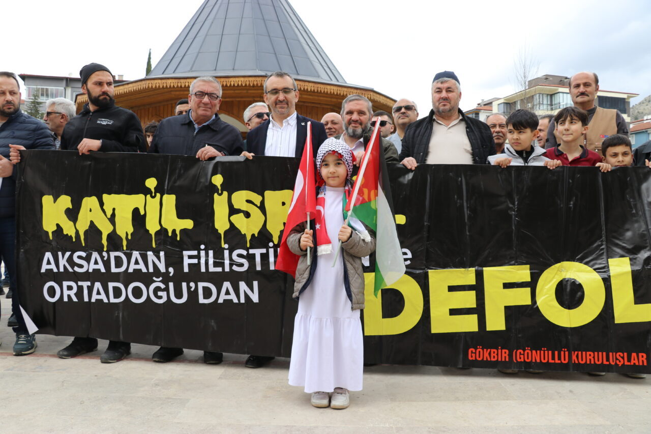 Amasya Gönüllü Kuruluşlar Birliği (GÖK-BİR) tarafından Hz. Ömer Camisi'nde cuma namazı sonrası İsrail'in Mescid-i Aksa'yı kapalı tutması ve Filistinli esirler için çıkarılan idam yasası protesto edildi.