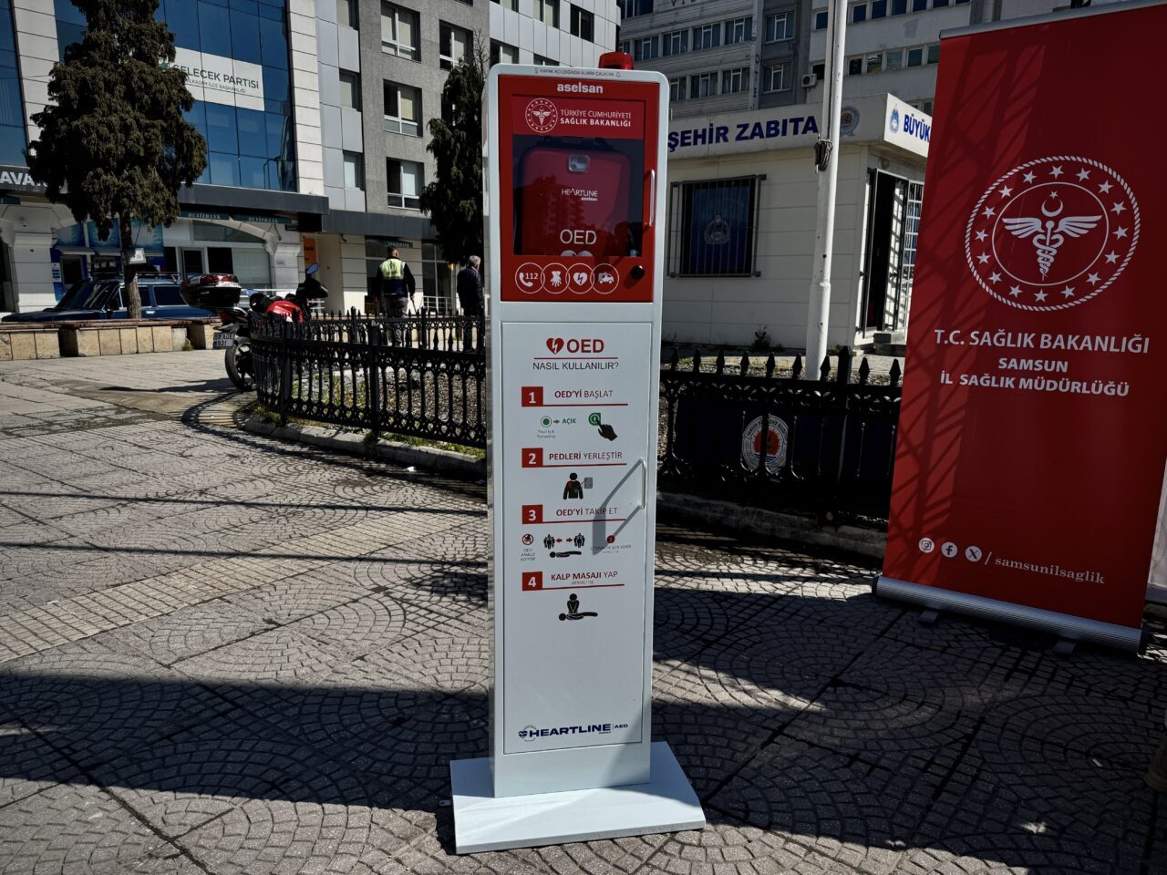 SAMSUN (AA) – Samsun'da 3 bölgeye Sağlık Bakanlığı ve ASELSAN iş birliğiyle Türk mühendisler tarafından üretilen Otomatik Eksternal Defibrilatör (OED) şok cihazları yerleştirildi.