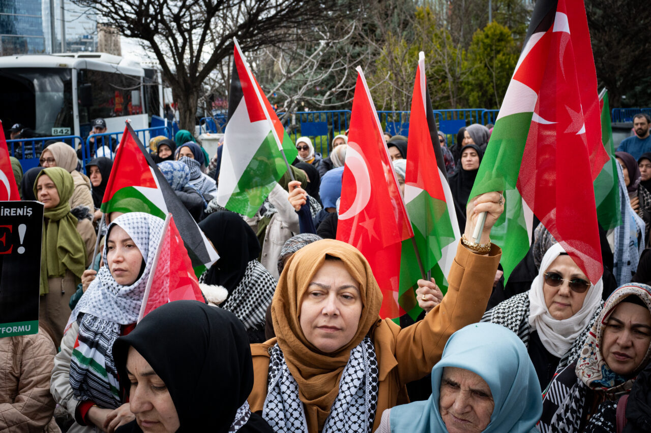ABD'nin Ankara Büyükelçiliği önünde toplanan ANFİDAP üyeleri, ABD ve İsrail aleyhine dövizler taşıdı, sloganlar attı.