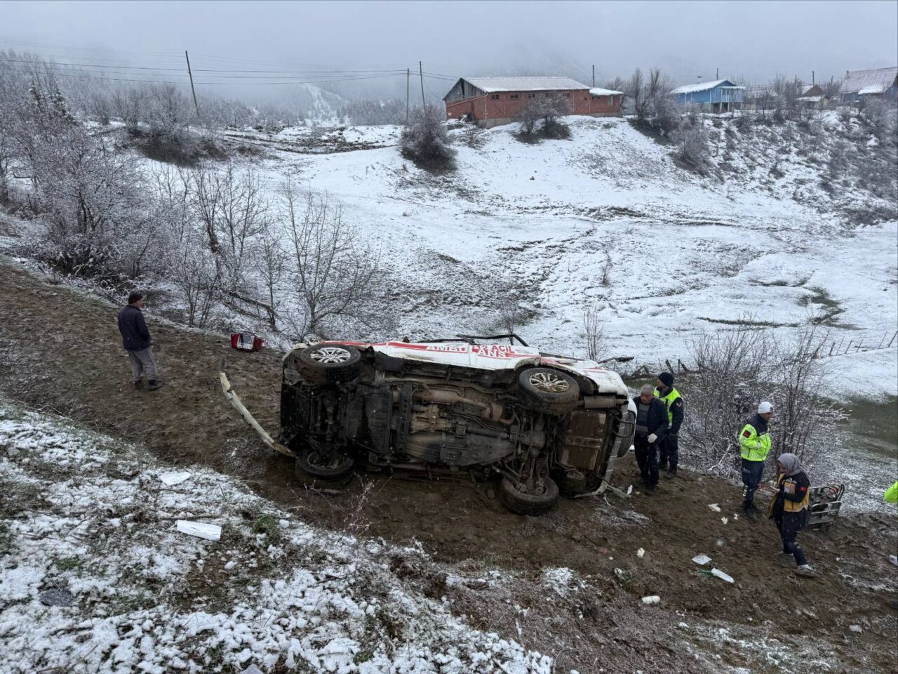 Ilıca köyünden aldığı hastayı Şavşat Devlet Hastanesine götüren Kamil Can Pektaş (27) idaresindeki ambulans, Çoraklı köyü mevkisinde uçuruma devrildi.