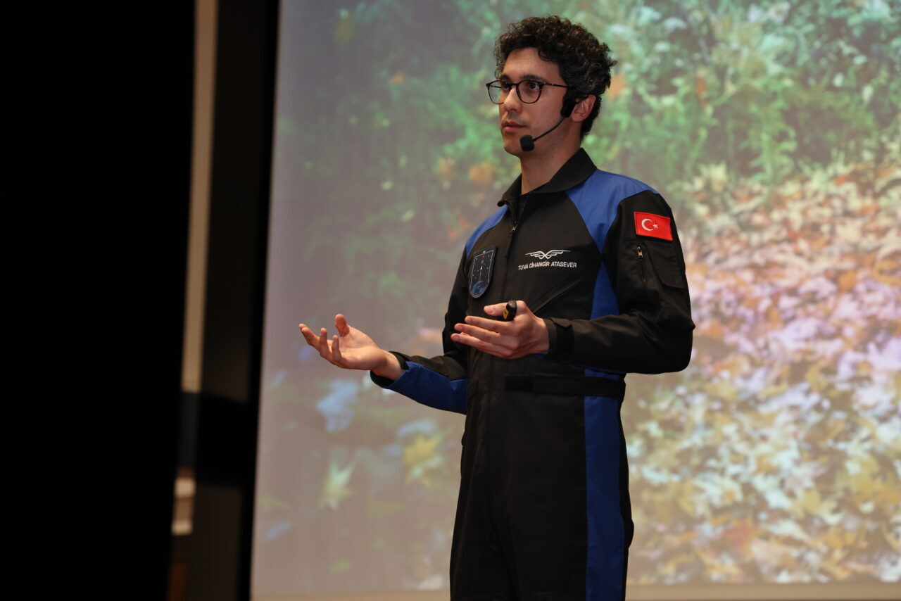 Erdoğan Akdağ Kongre ve Kültür Merkezi'nde düzenlenen "Sektör Kampüste Kariyer Buluşmaları" programına katılan Atasever, öğrencilere uzay yolculuğu süreci ve deneyimleri hakkında bilgi verdi.