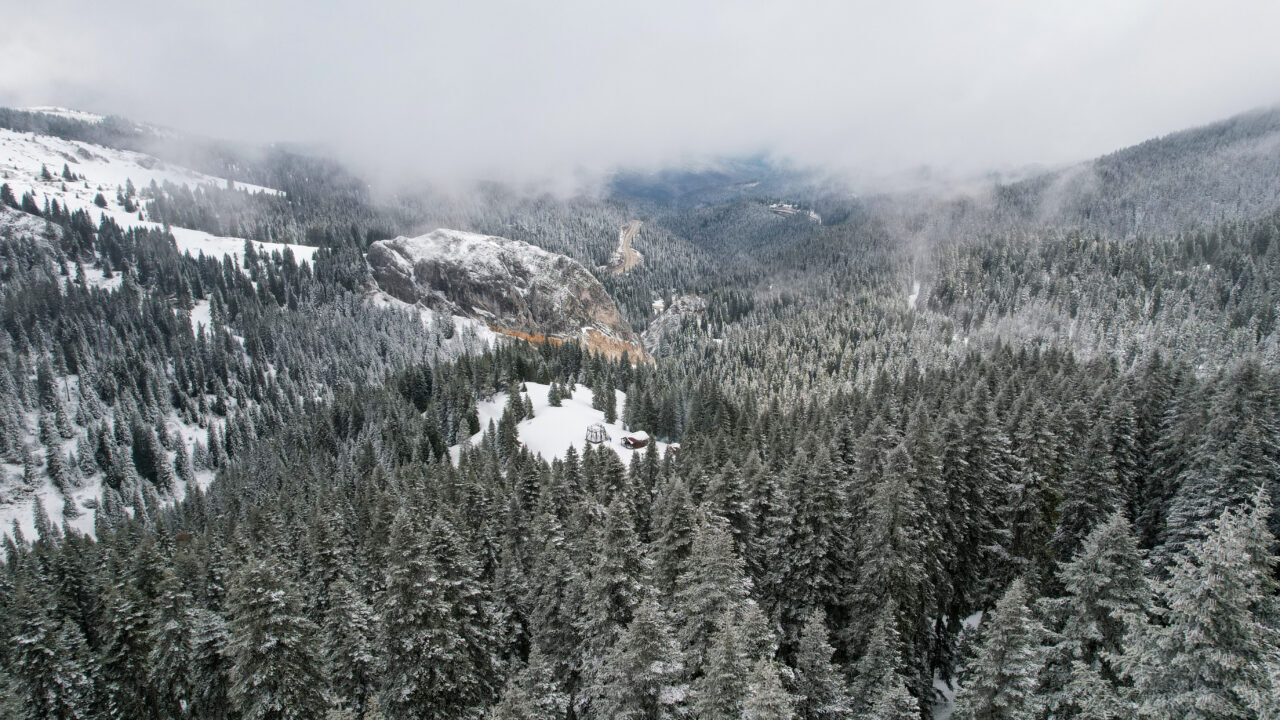 Kastamonu-Çankırı sınırındaki, Batı Karadeniz'in 2 bin 587 rakımlı Büyük Hacet Tepesi ile en yüksek dağı Ilgaz'daki ormanlar, yüksek rakımlarda etkili olan kar yağışının ardından beyaza büründü.