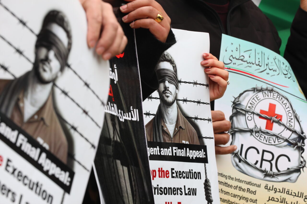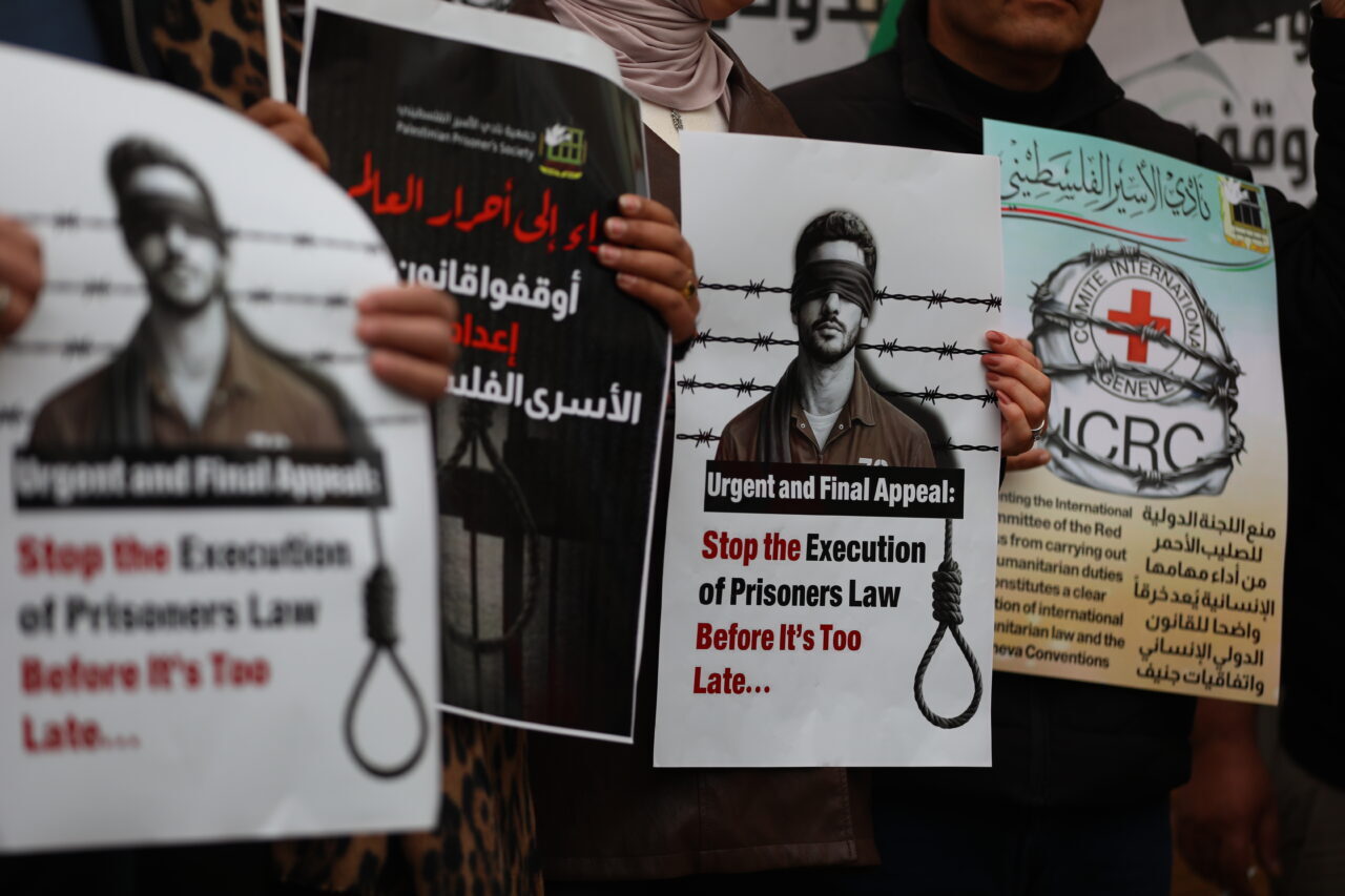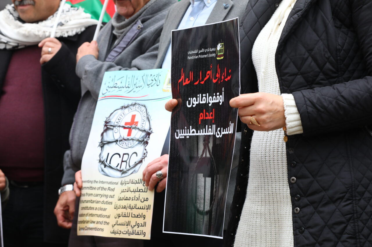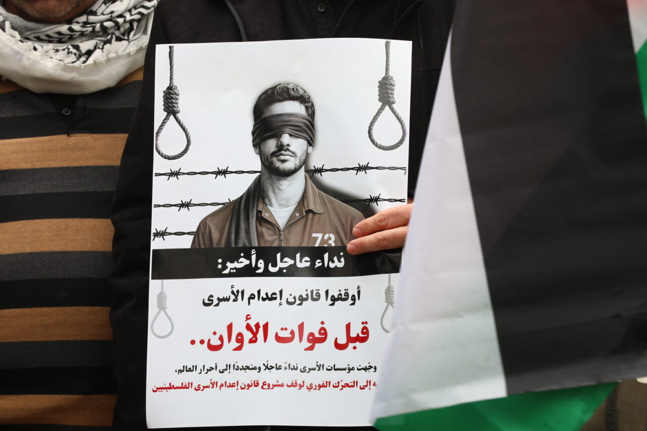 Protestolarda, İsrail'in Filistinli esirlere yönelik idam yasasına "sessiz bir soykırım" ve "ölümün meşrulaştırılması" şeklinde tepki gösterildi.