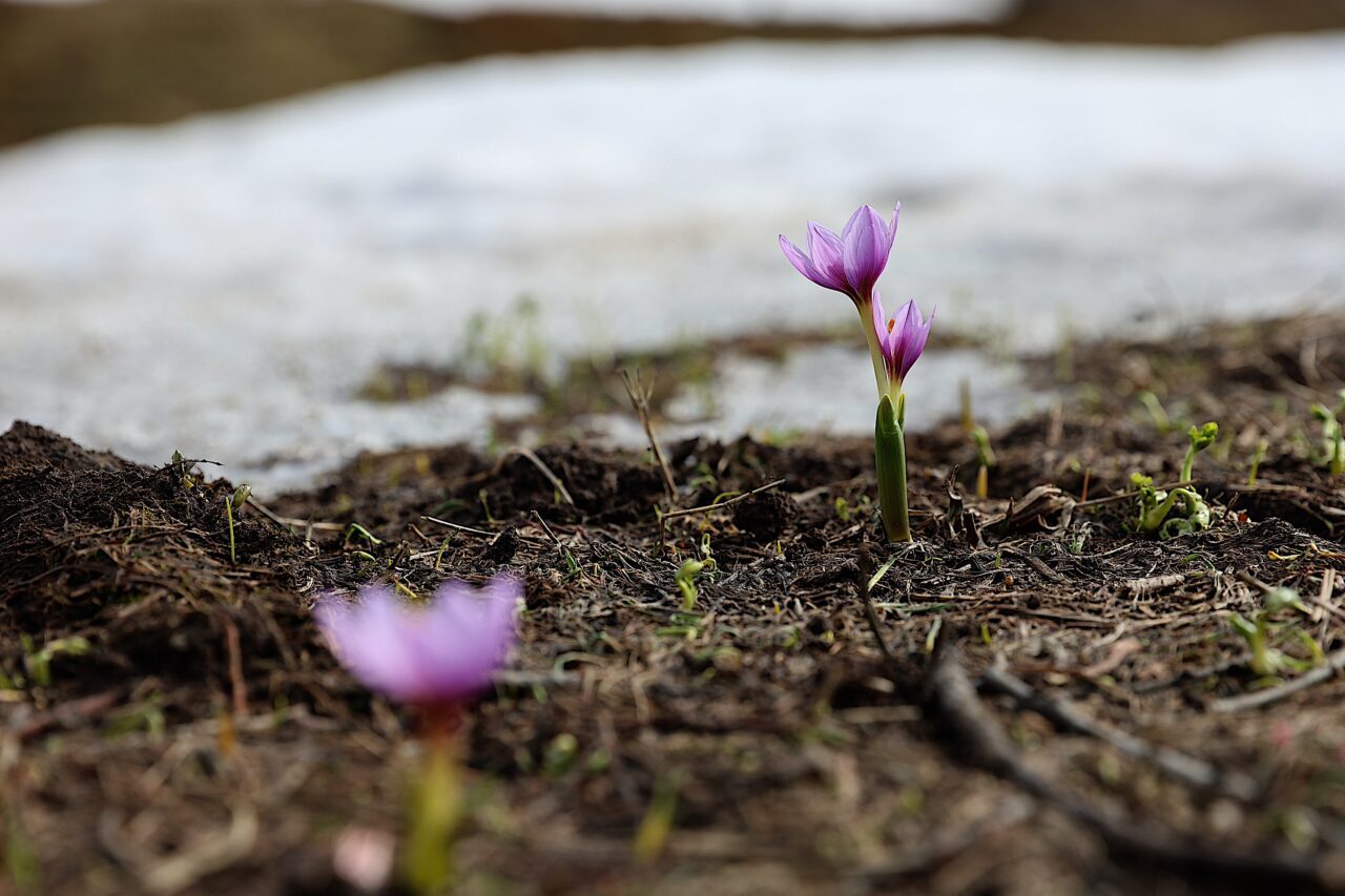 Çetin geçen kışın ardından havanın ısınmaya başlamasıyla yüksek kesimlerde beyaz, pembe ve mor çiğdemler açtı.