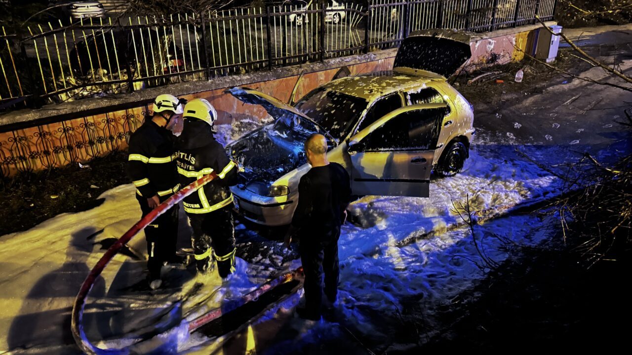 İtfaiye ekiplerinin çalışması sonucu kontrol altına alınan yangında otomobil kullanılmaz hale geldi.