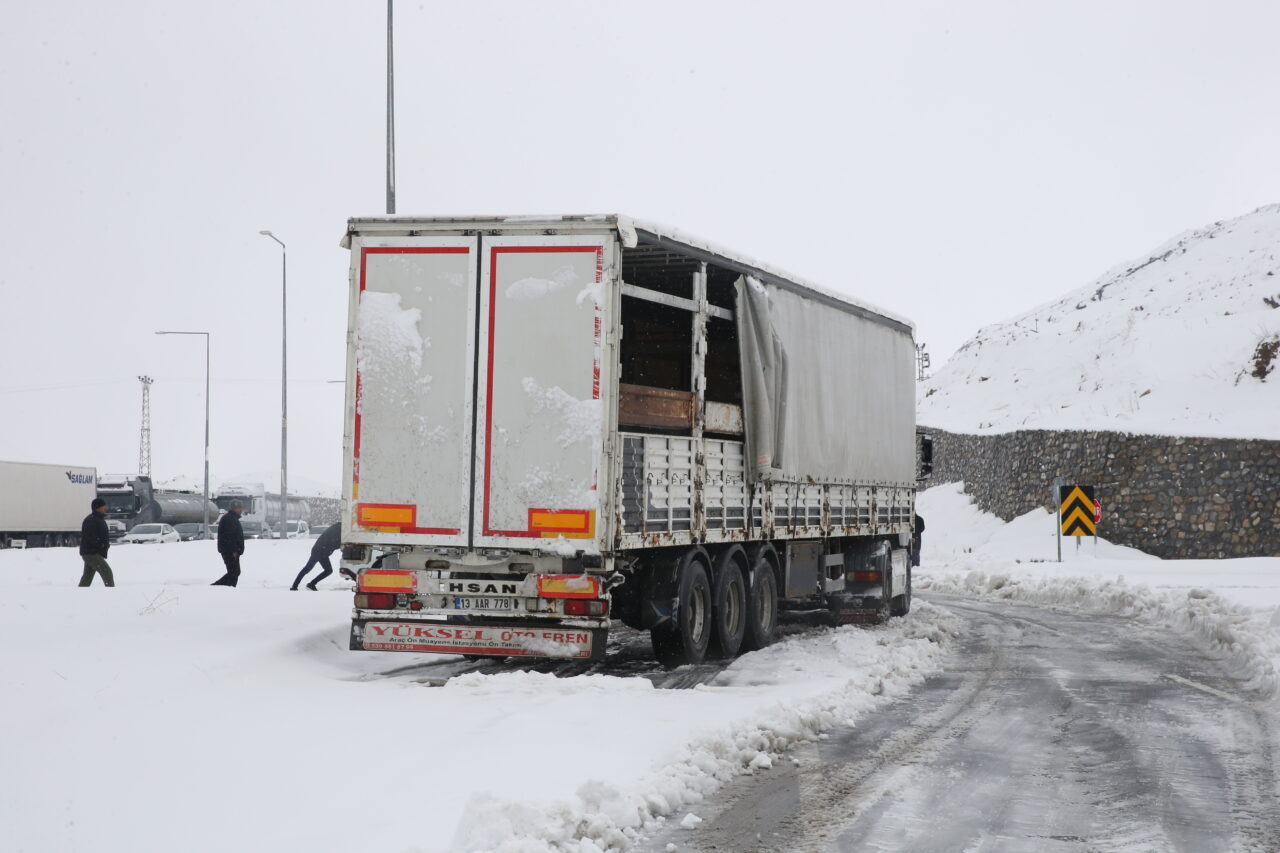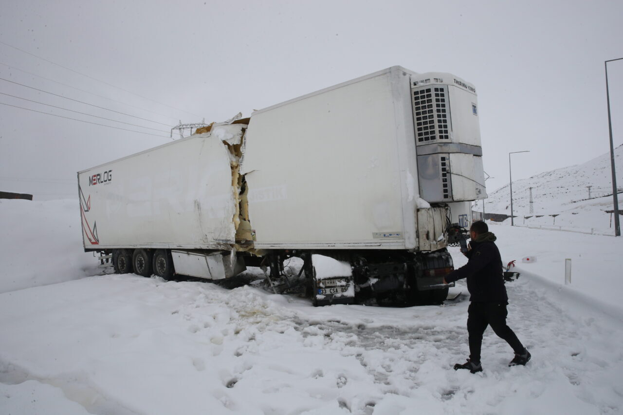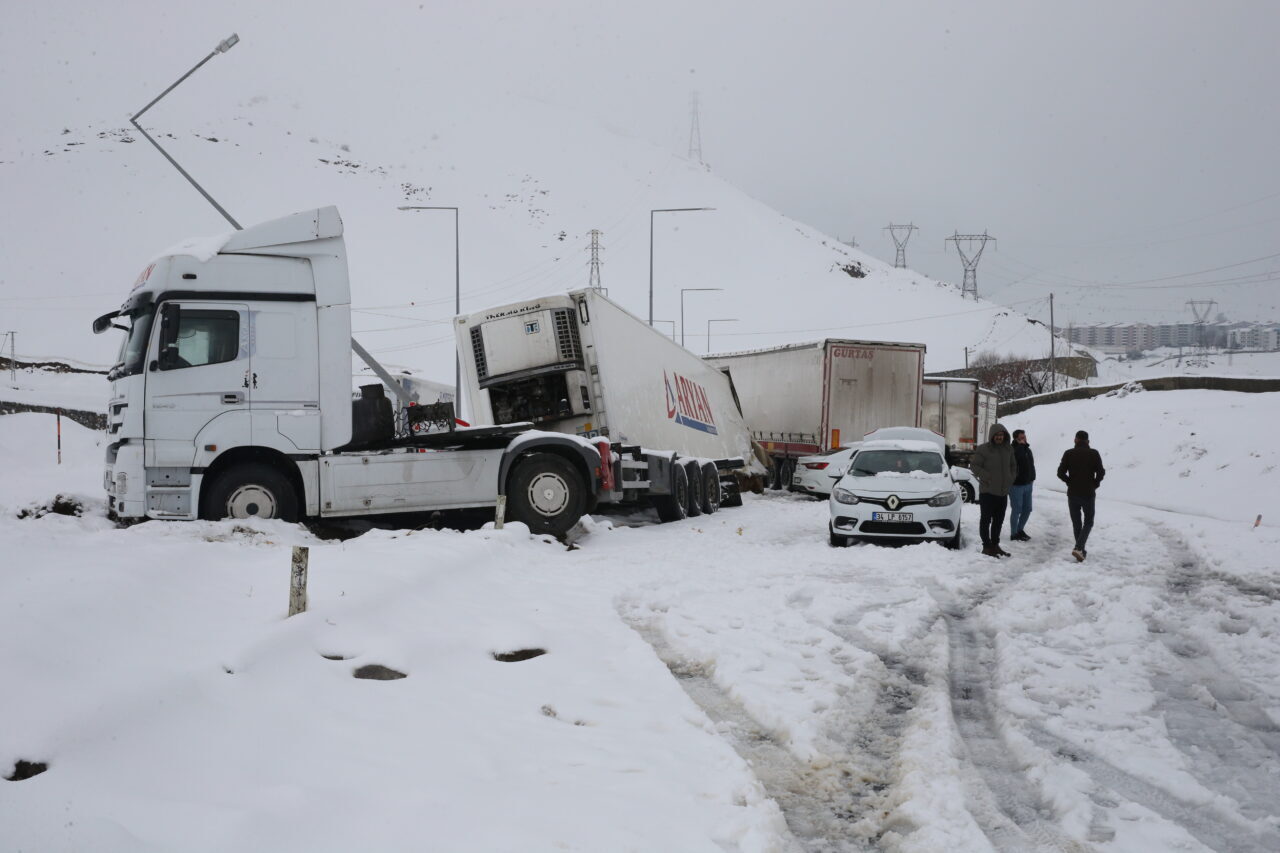 Kar yağışının aralıklarla etkisini sürdürdüğü kentte, çevre yolunda kontrolden çıkan 4 tır ve 2 otomobil çarpıştı.