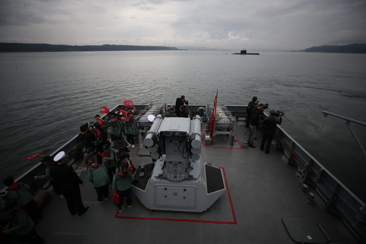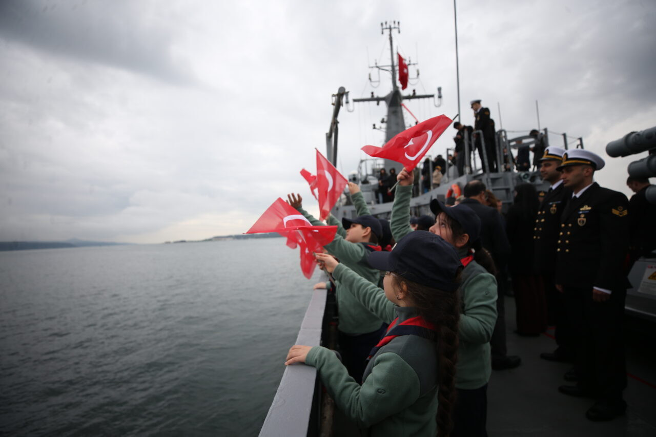Şehitler anısına gemiden sirenlerin çalındığı tören, davetliler tarafından "TCG Türkeli" gemisiyle denize açılarak takip edildi.