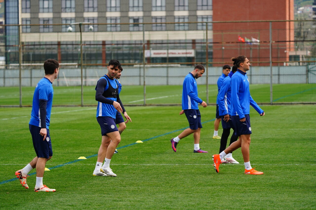 Mehmet Cengiz Tesisleri'nde, teknik direktör Recep Uçar yönetimindeki antrenman, kondisyon merkezinde yenilenme çalışmasıyla başladı. Sahada ısınma, pas çalışması, geçiş ve sonuçlandırma uygulamalarıyla devam eden idman, dar alanda çift kale maçla tamamlandı.