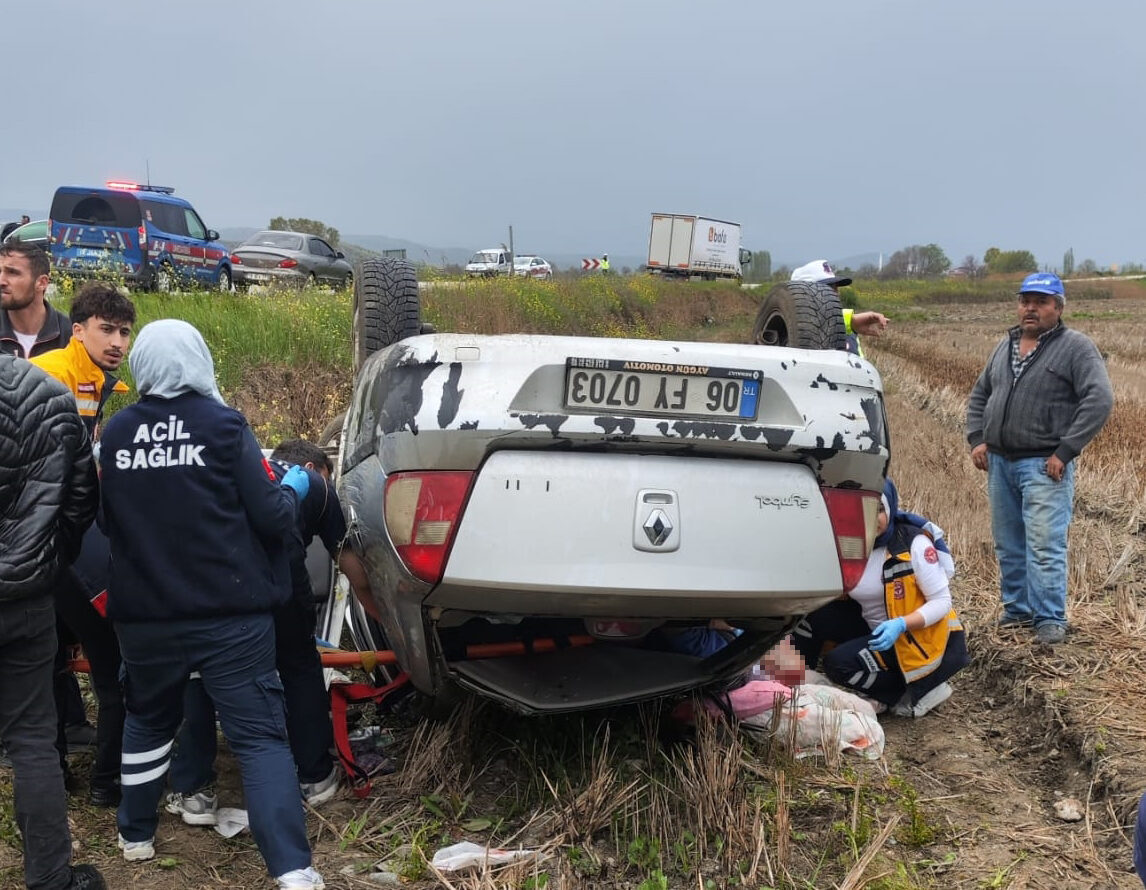 Salih A. idaresindeki 06 FY 0703 plakalı otomobil, Girinoğlan köyü Kavşak Çayı mevkisinde yol kenarındaki çeltik tarlasına devrildi.
