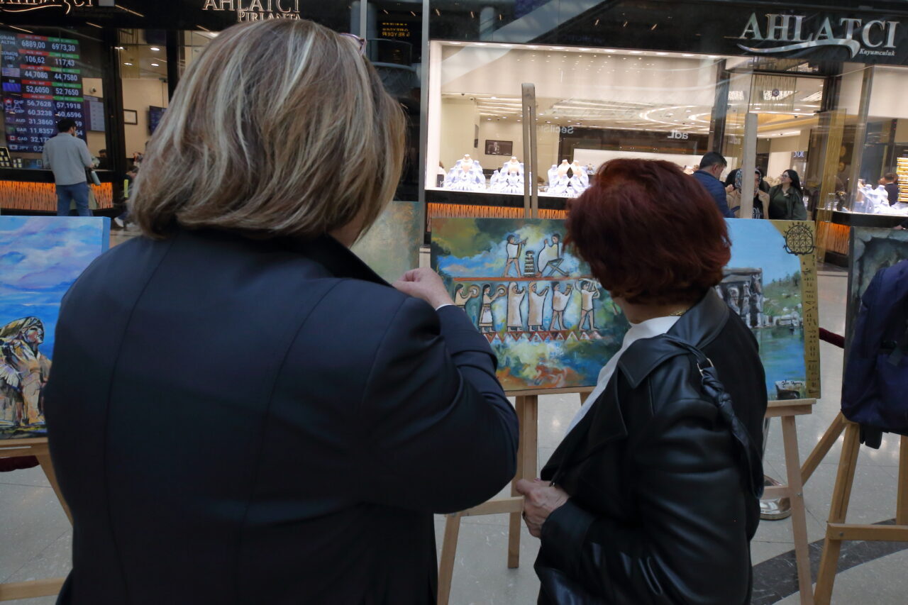 Çorum Valiliği, Çorum Belediyesi, Hitit Üniversitesi ve Vakıf 19 Çorumlular Vakfı tarafından Dünya Hitit Günü etkinlikleri çerçevesinde kentteki bir alışveriş merkezinde açılan sergide, Türkiye'nin yanı sıra Rusya, Türkmenistan ve İran'dan sanatçıların Hitit medeniyetinin figürlerinden oluşan tabloları ziyaretçilerin beğenisine sunuldu.