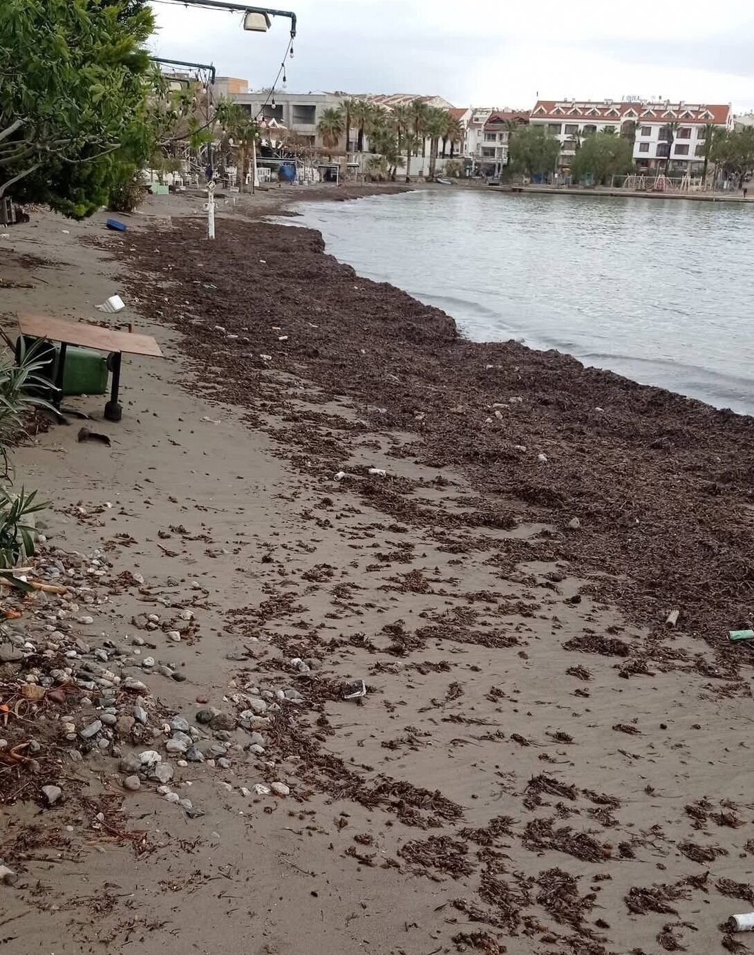 Deniz yüzeyindeki atıkların ve yosunların kıyıya vurmasıyla sahil şeridinde kirlilik meydana geldiği görüldü.