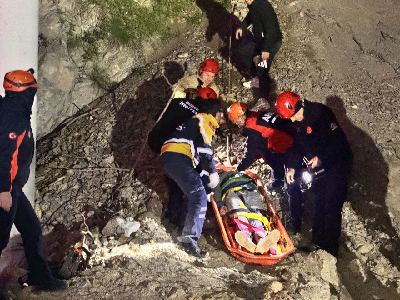 DÜZCE (AA) – Düzce'de yamaçta mahsur kalan 3 kişi, AFAD ve itfaiye ekiplerince kurtarıldı.