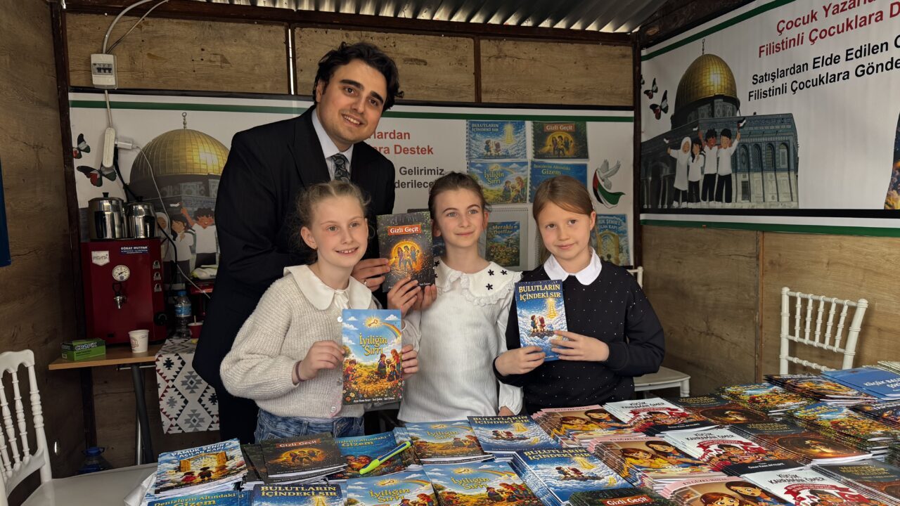 "Burada Filistinli kardeşlerimize yardım etmek için bulunuyoruz. Kazanılan para tamamen oraya gidecek. Filistin'de savaş olduğunu duyunca kitapları daha fazla bastırmayı ve daha çok çalışmayı düşündük. Bu bizim için çok gurur verici. Kitaplarımızı yazarken her aşamada Bahar öğretmenimize okuyorduk. Hatta bir kitabımızda onu 'Süper Bahar' ismiyle kahraman bile yaptık. Onu çok seviyoruz."