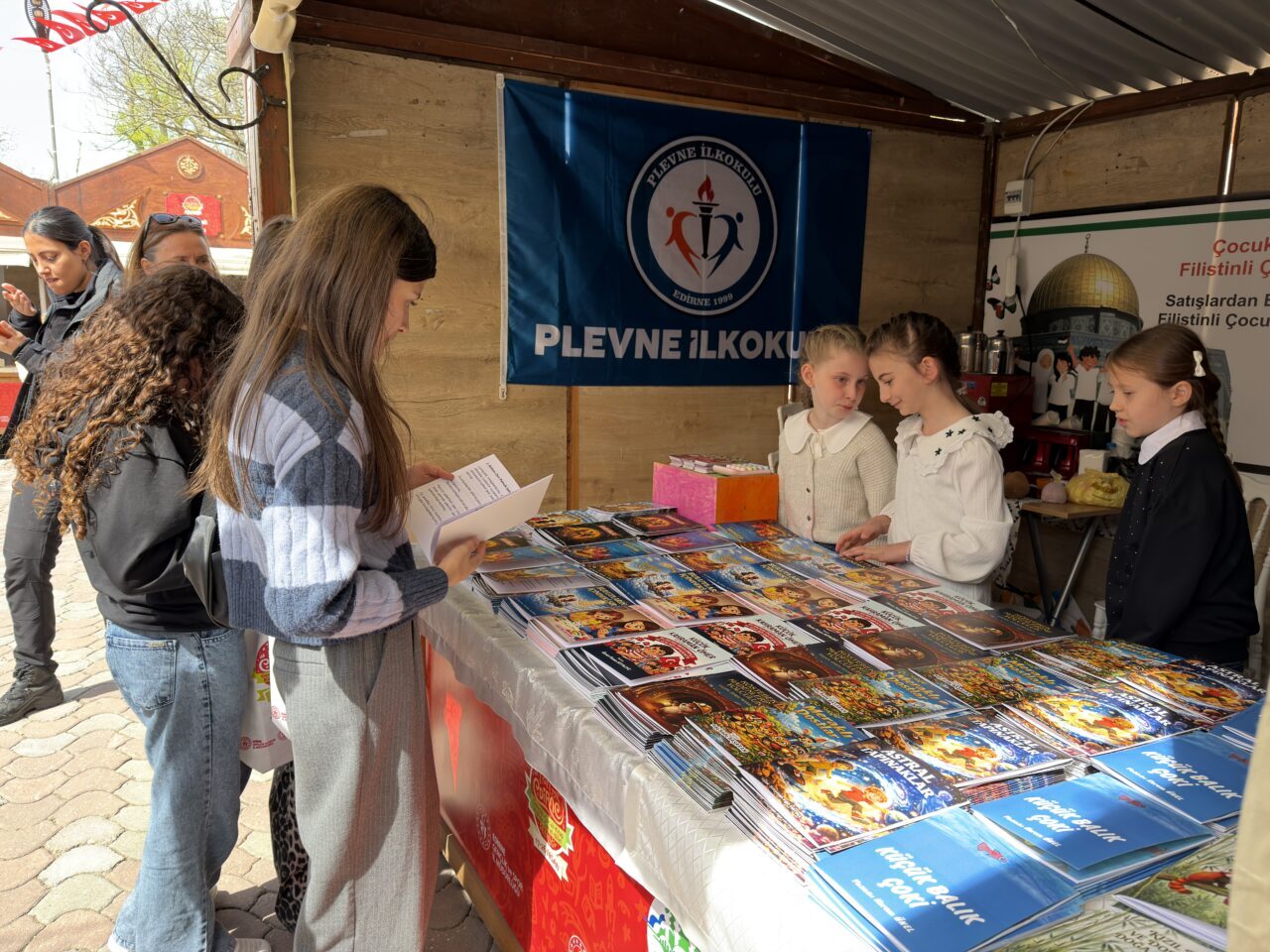 Öğrenciler İzel Özkan ve İnci Şahin de tüm Edirnelileri kitap fuarındaki stantlarına davet ederek elde edilen gelirle Filistinli akranlarının yaralarını bir nebze olsun sarmak istediklerini ifade etti.