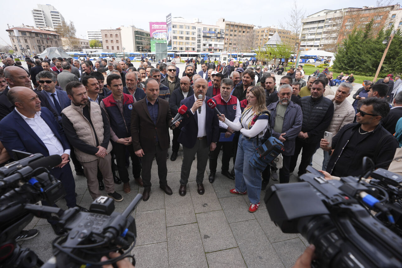 Sendika üyeleri cuma namazı sonrası Ulus'taki Melike Hatun Camisi önünde bir araya geldi.