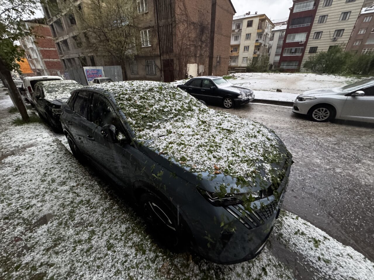 Yaklaşık 20 dakika kuvvetli bir şekilde devam eden dolunun ardından caddeler, sokaklar, kaldırımlar, araçların üstü ve evlerin çatısı beyaza büründü.