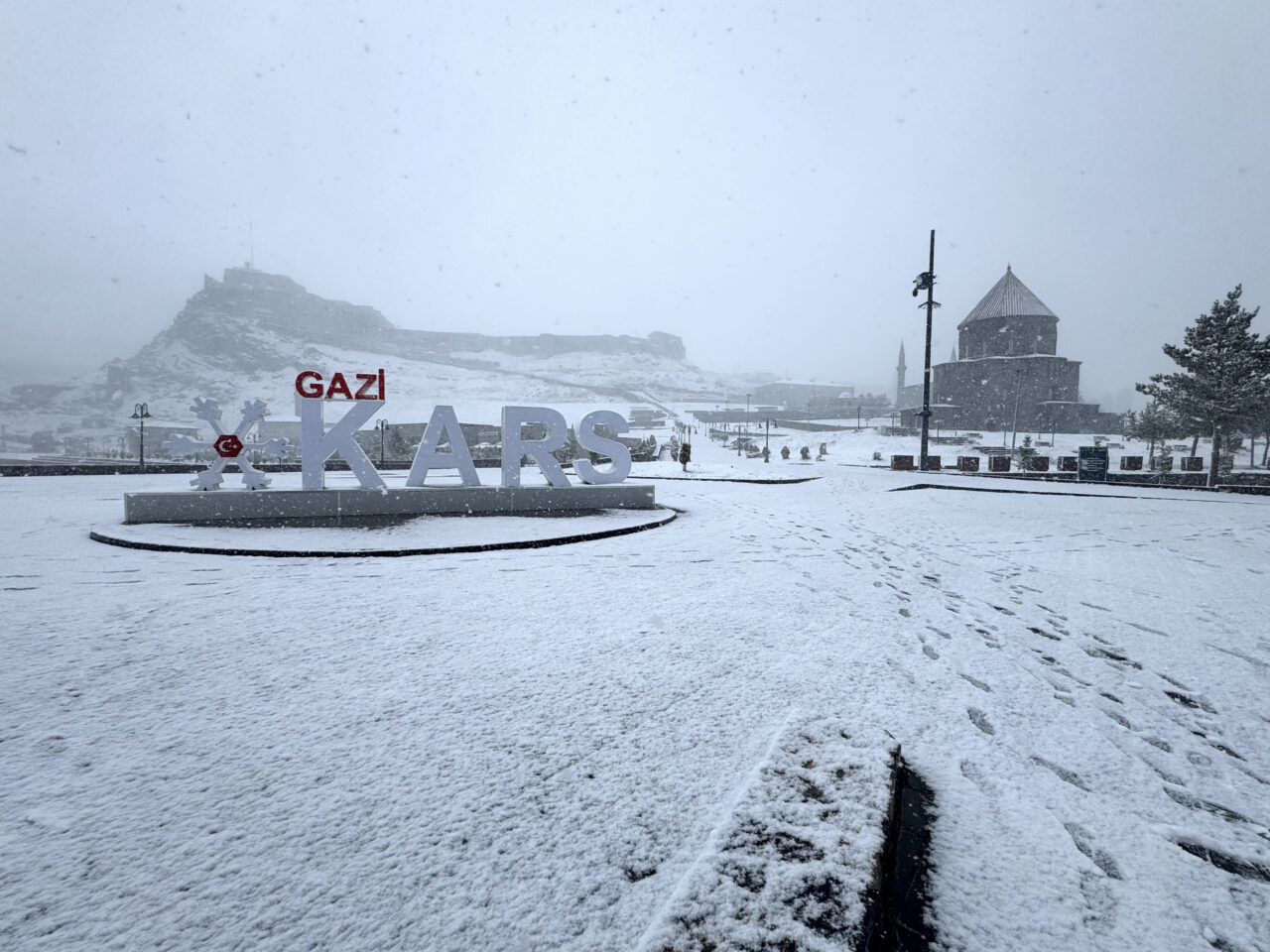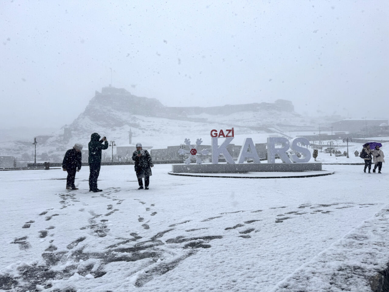 Kars'ta sabah başlayan ve aralıklarla devam eden kar, akşam saatlerinde etkisini artırdı.