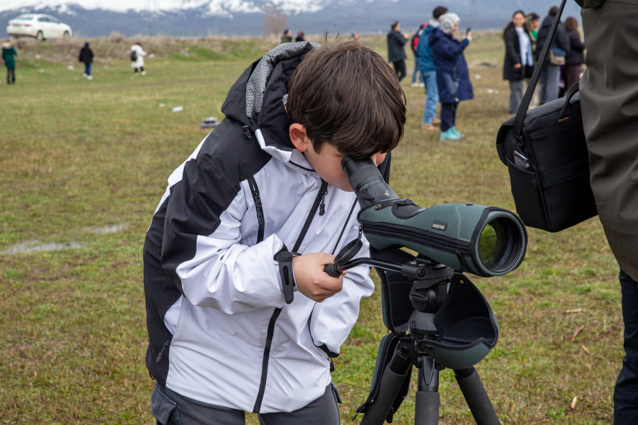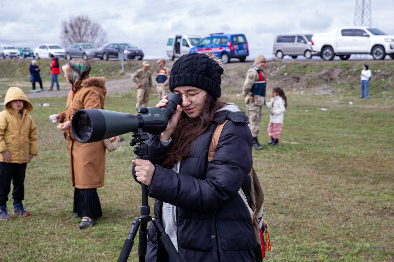Etkinliğe katılanlar, jandarma ekiplerinin gözetiminde fotoğraf makinesi ve dürbünlerle kuşları gözlemlemeye çalıştı.