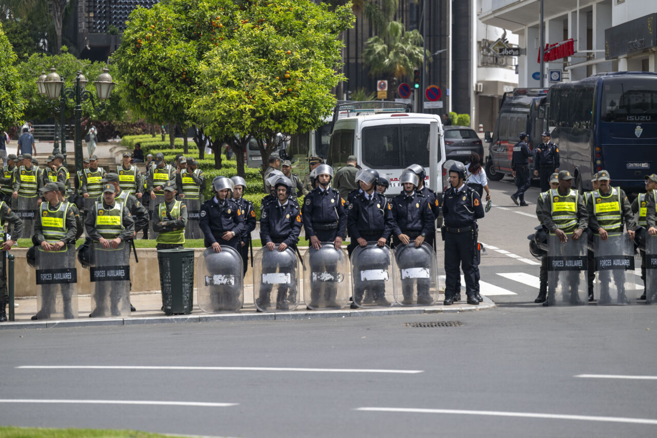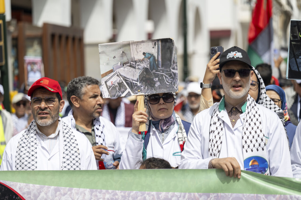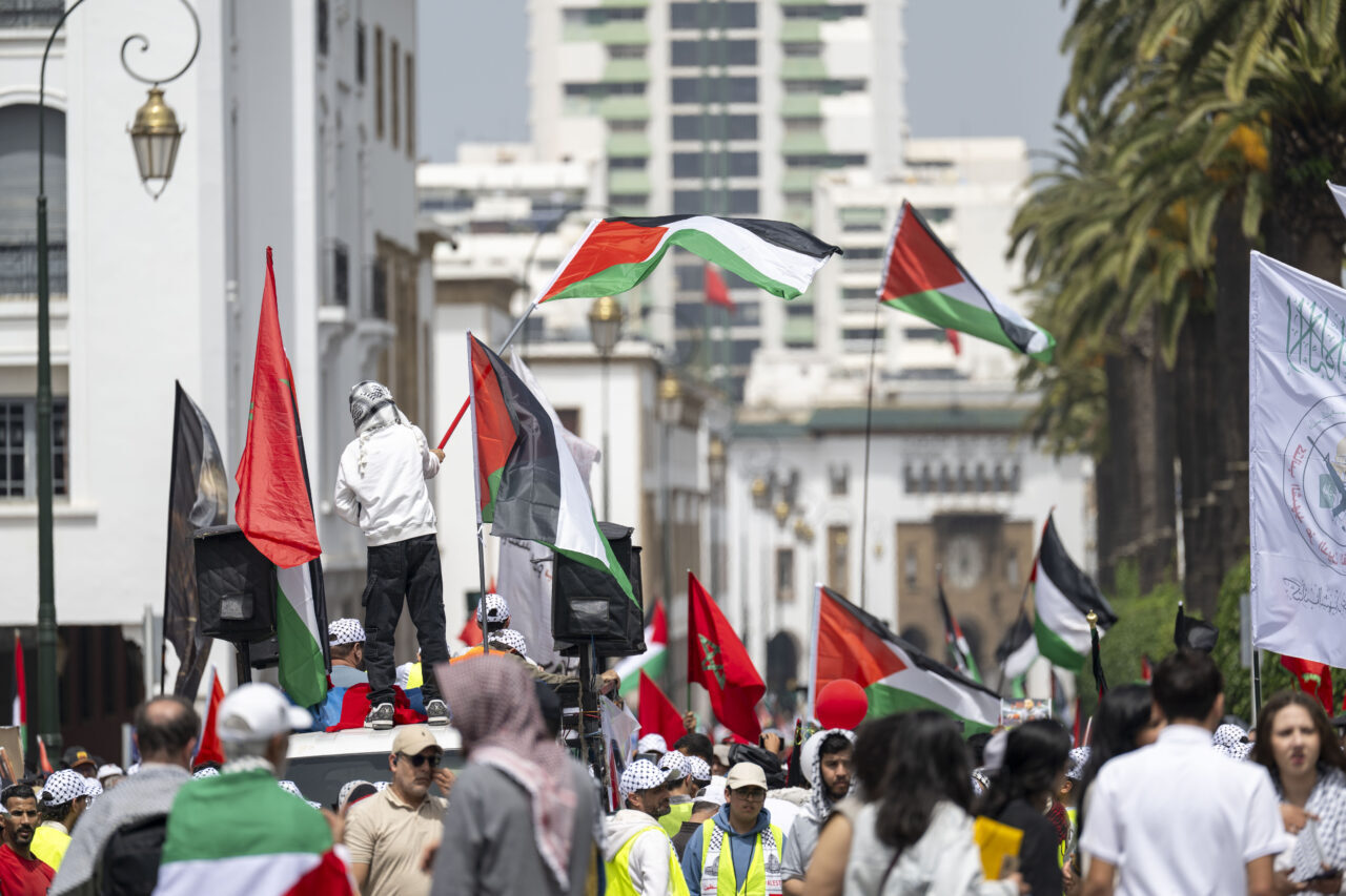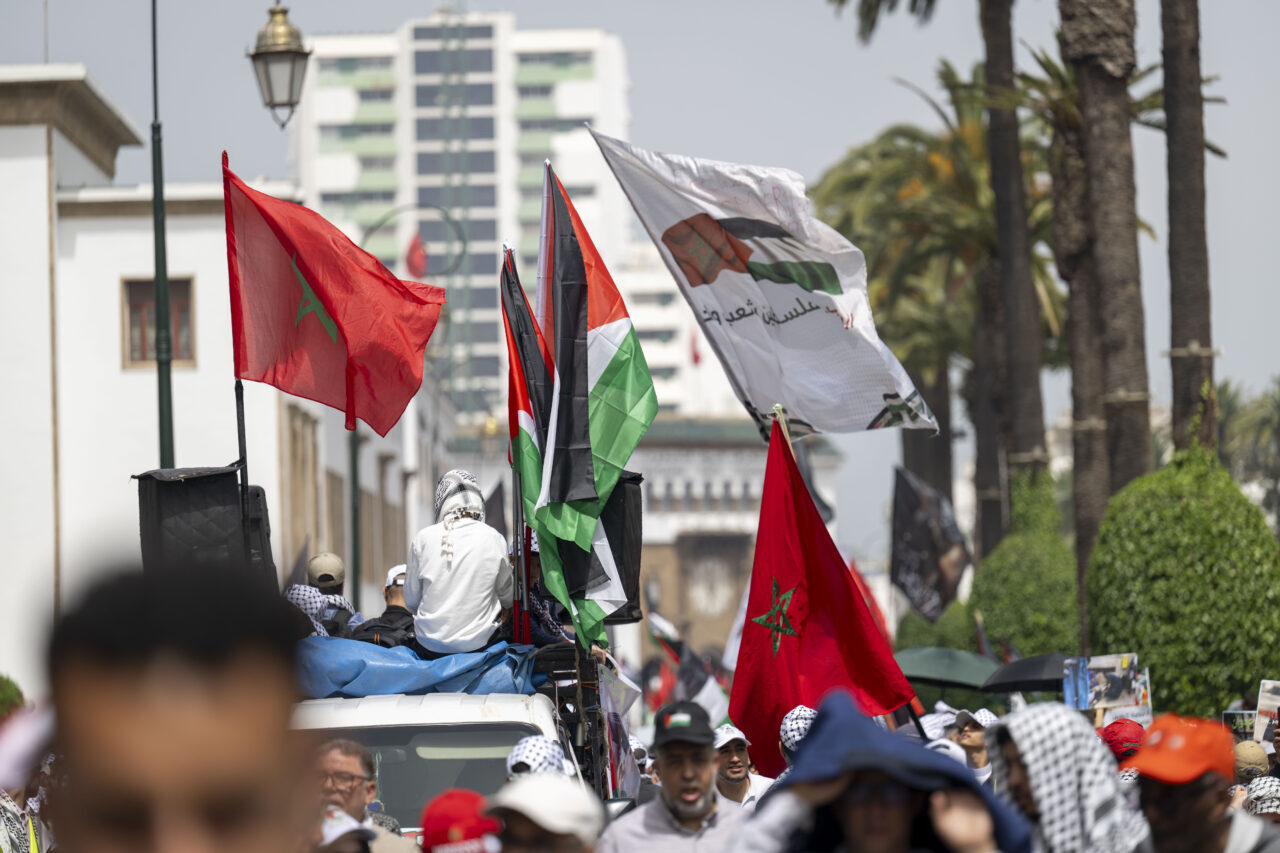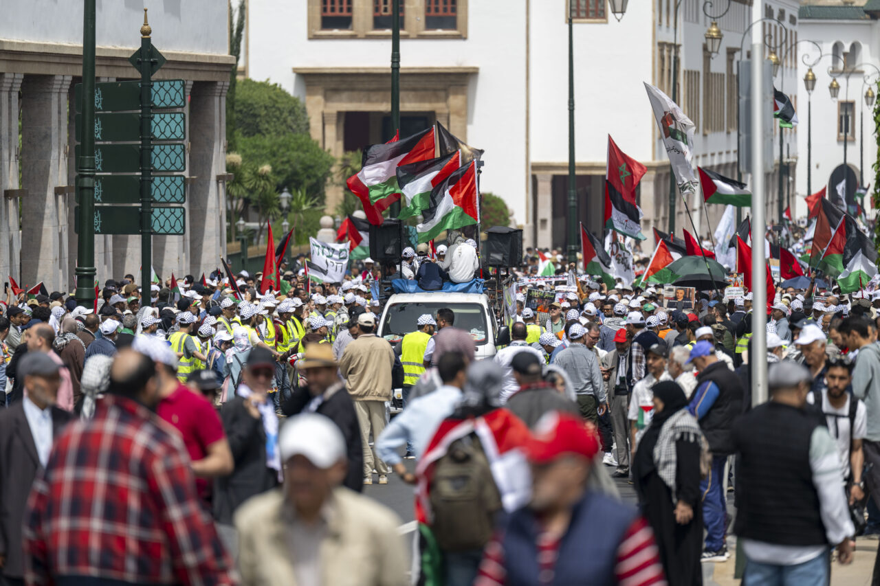 Filistin için Ulusal Eylem Grubu ile Fas Filistin’e Destek Cephesi öncülüğünde düzenlenen yürüyüş, tarihi Bab el-Had Meydanı’ndan başlayarak Parlamento binasına doğru ilerledi.