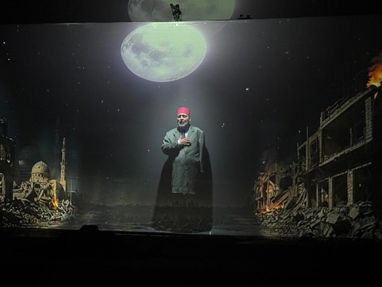 Oyunda, Milli Şair'in Bosna Hersek, Karabağ, Irak, Suriye ve Gazze'ye yaptığı yolculuklar hologram tekniğiyle sahneye taşınıyor.