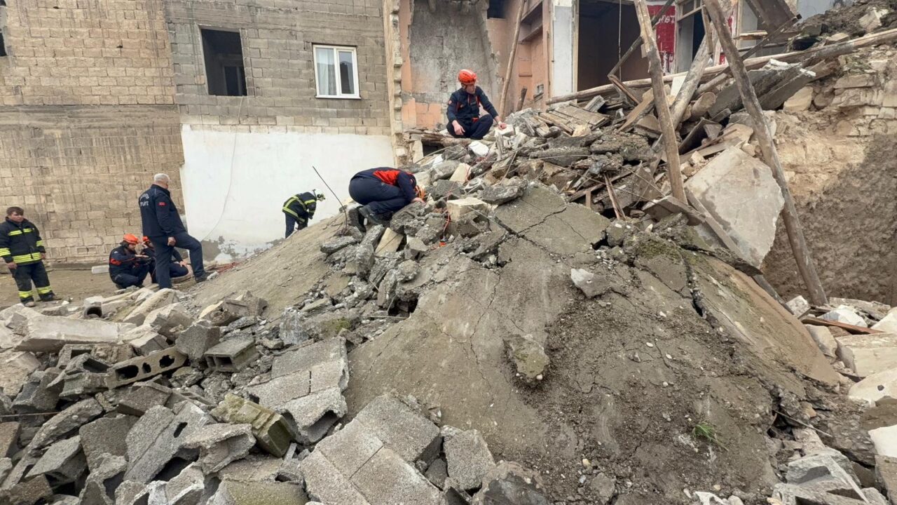 Öte yandan, çöken yapıdan yayılan molozların bitişikteki evin girişini kapatması sonucu içeride mahsur kalan 2 kişi, itfaiye ekiplerince bulundukları yerden çıkarıldı.