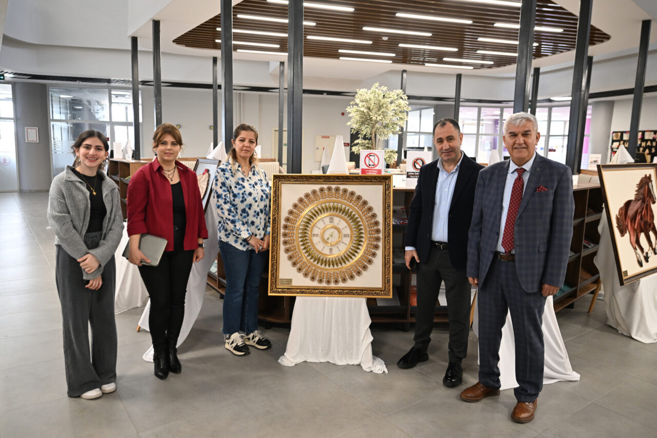 İl Halk Kütüphanesi Fuaye Alanı'nda açılan sergide, Osmanlı döneminden, ayetlerden ve modern eserlerden esinlenilerek yapılan 20 filografi tablosu yer alıyor.