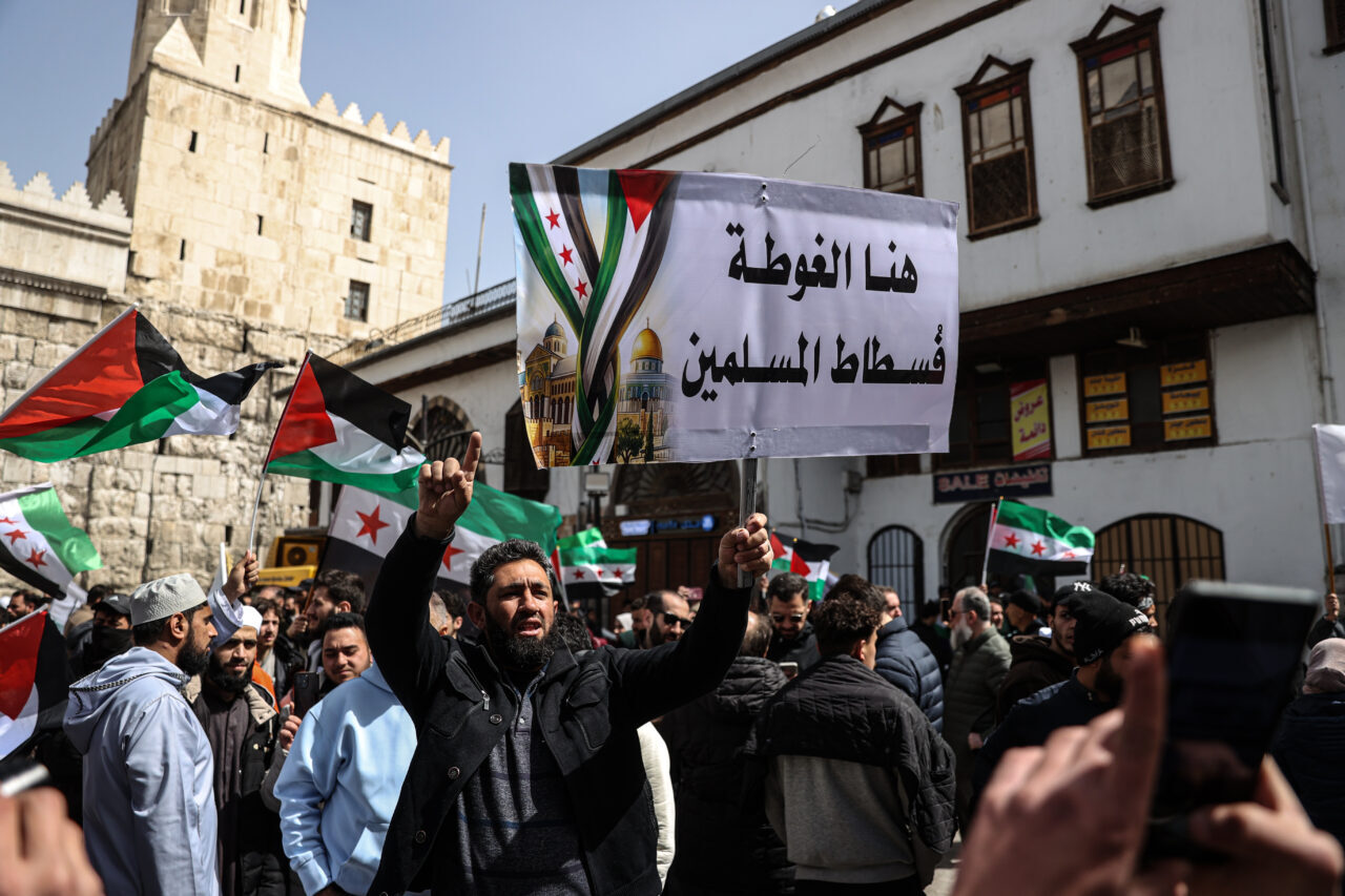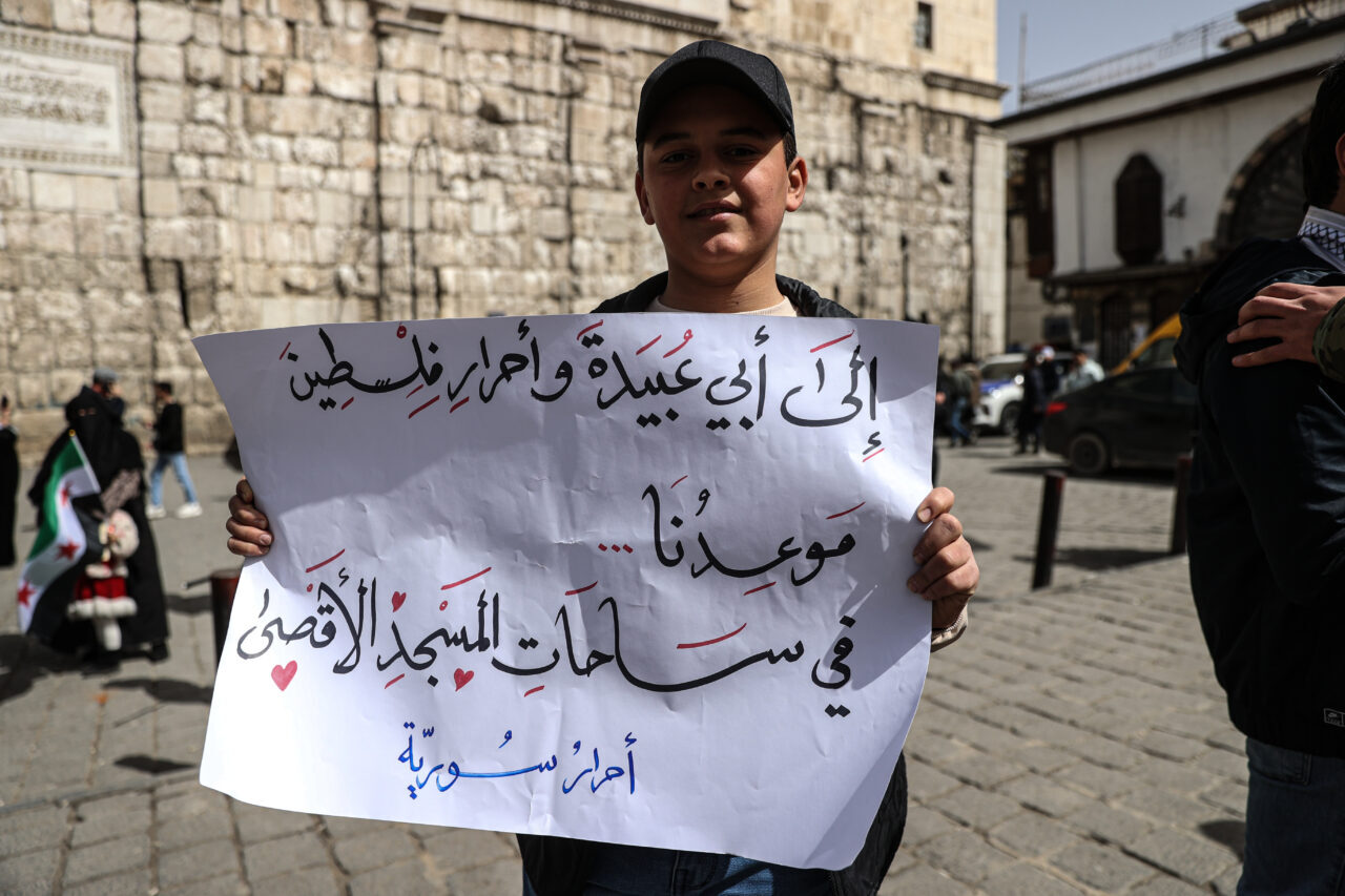 Başkent Şam’da düzenlenen gösterilerde konuşan Şerif el-Hasan ise Mescid-i Aksa ve Filistin meselesinin tüm Müslümanların ortak davası olduğunu söyledi.