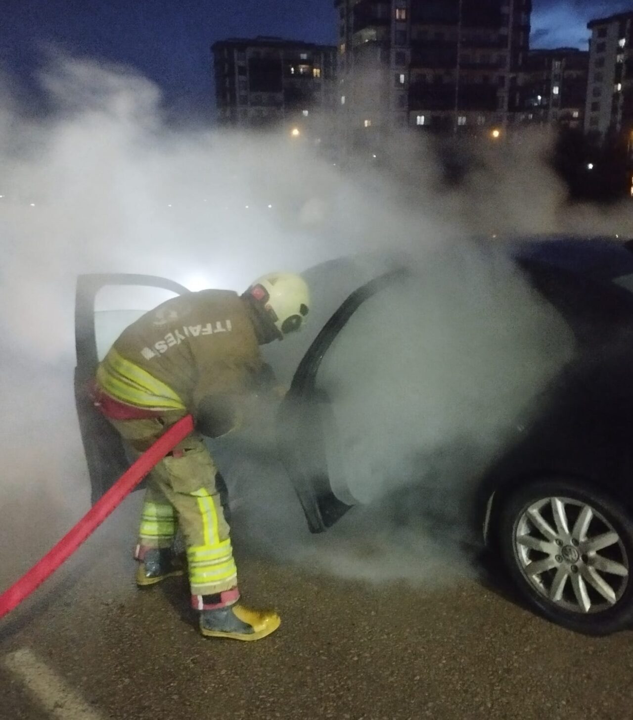 Ekiplerin müdahalesiyle söndürülen yangın nedeniyle otomobilde hasar oluştu.