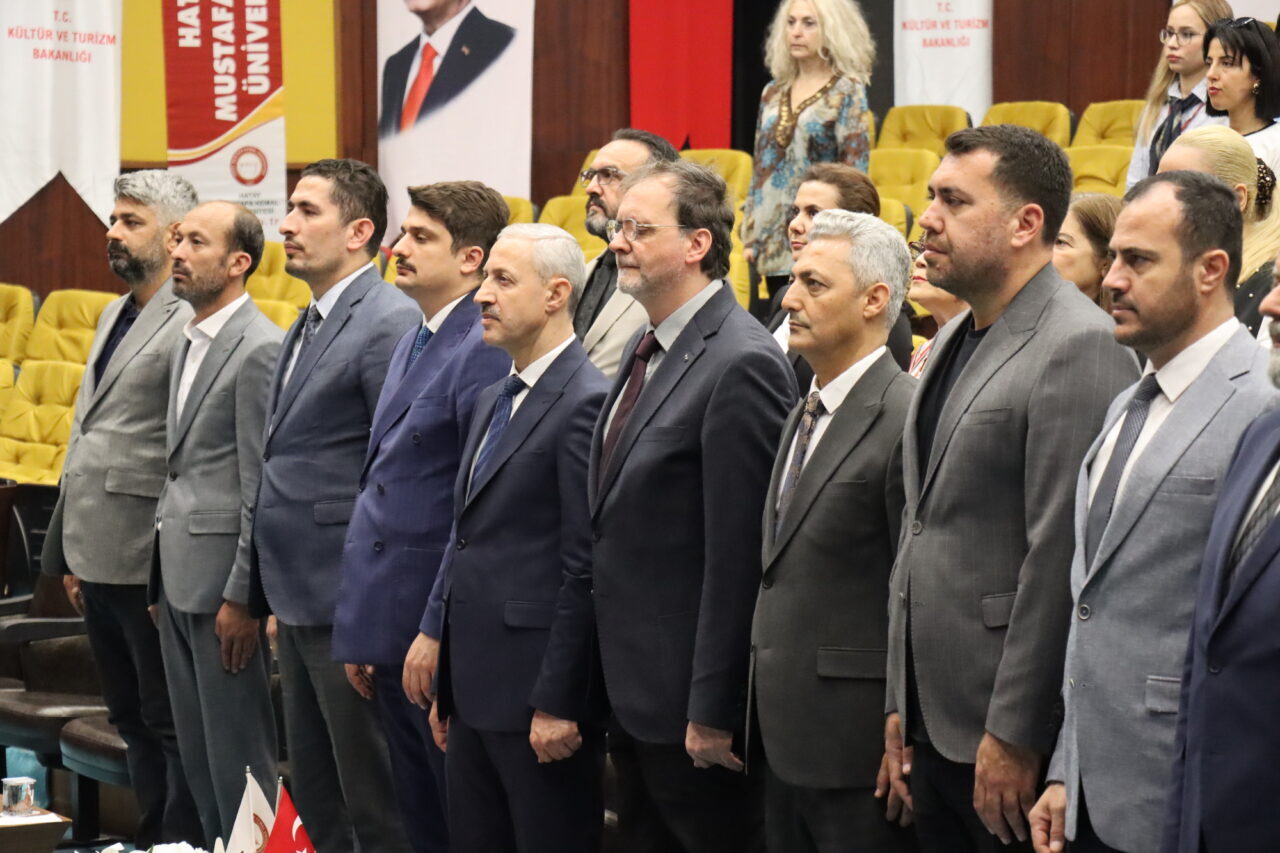 Valilik koordinasyonunda, Büyükşehir Belediyesi, Hatay Mustafa Kemal Üniversitesi (HMKÜ) ile İl Kültür ve Turizm Müdürlüğü işbirliğiyle düzenlenen sempozyum, HMKÜ Atatürk Konferans Salonu'nda yapıldı.