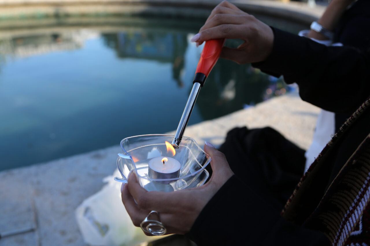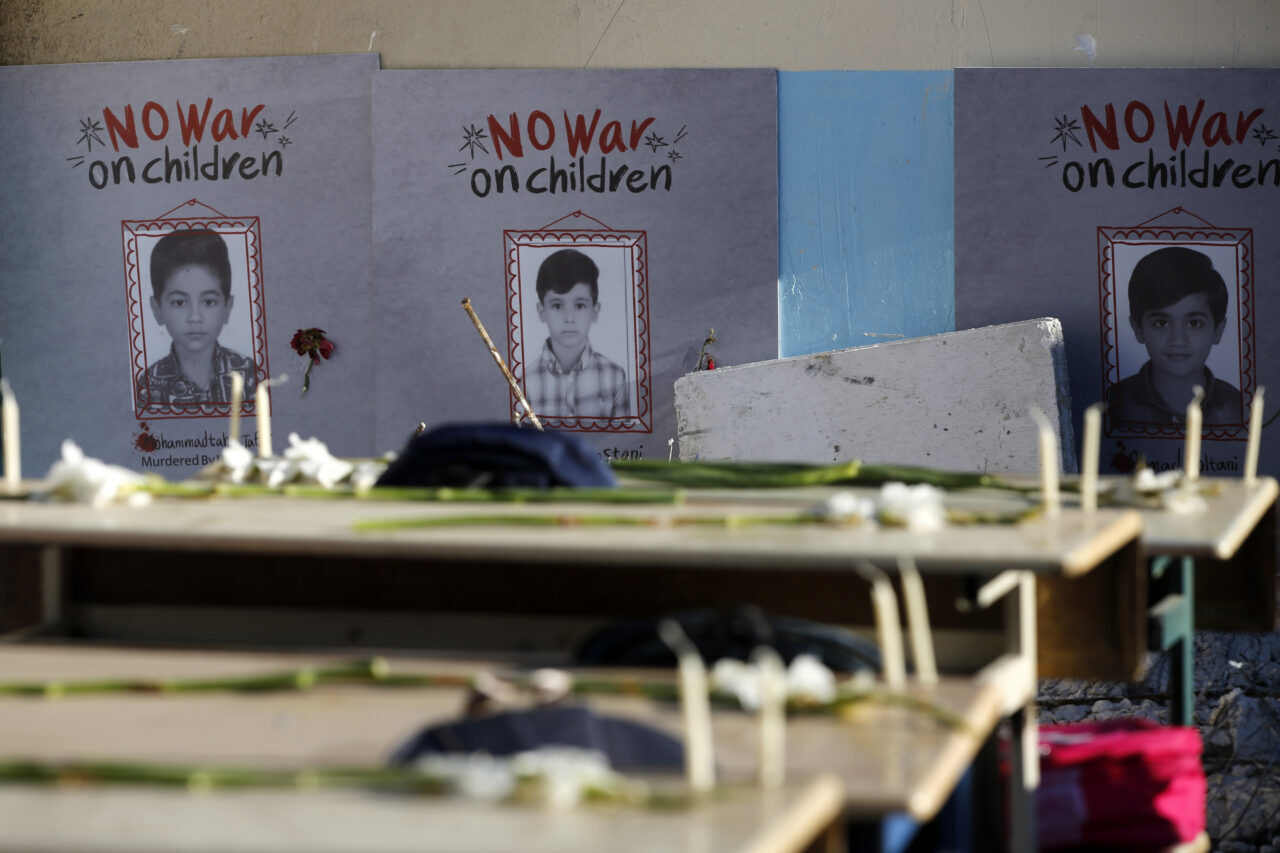 Şehir Tiyatroları’nın yanında kurulan sembolik sınıfta sıralara Şeceretü't-Tayyibe Kız İlkokulu öğrencilerinin fotoğraf ve çizilen resimleri yerleştirilirken, alanda bulunan bir havuza kağıttan yapılmış kayıklar bırakıldı.