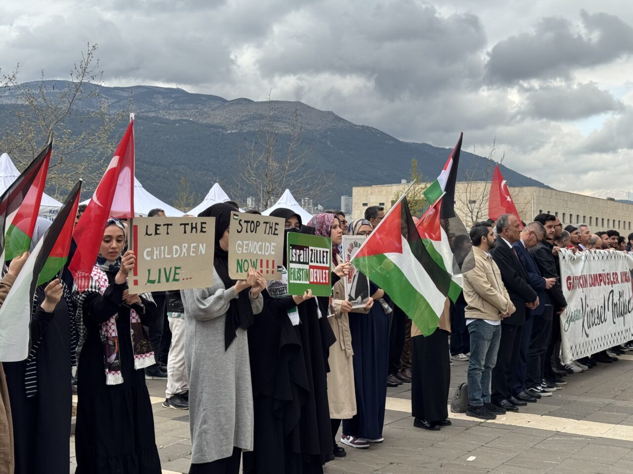 Grup adına açıklama yapan Abdulkadir Yılmaz, İsrail rejimi tarafından, Gazze'de soykırım yapıldığını ifade etti.