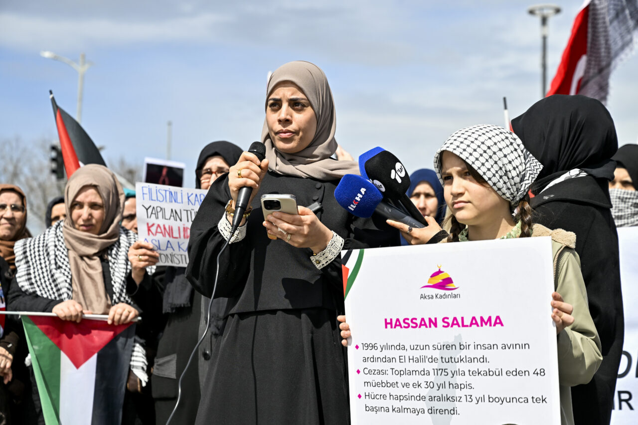 Grup adına açıklama yapan Aksa Kadınları Derneği Başkanı Müyesser Yağız, İsrail'in, cezaevlerinde bulunan 12 bin Filistinli mahkumun idam kararını onayladığını söyledi.
