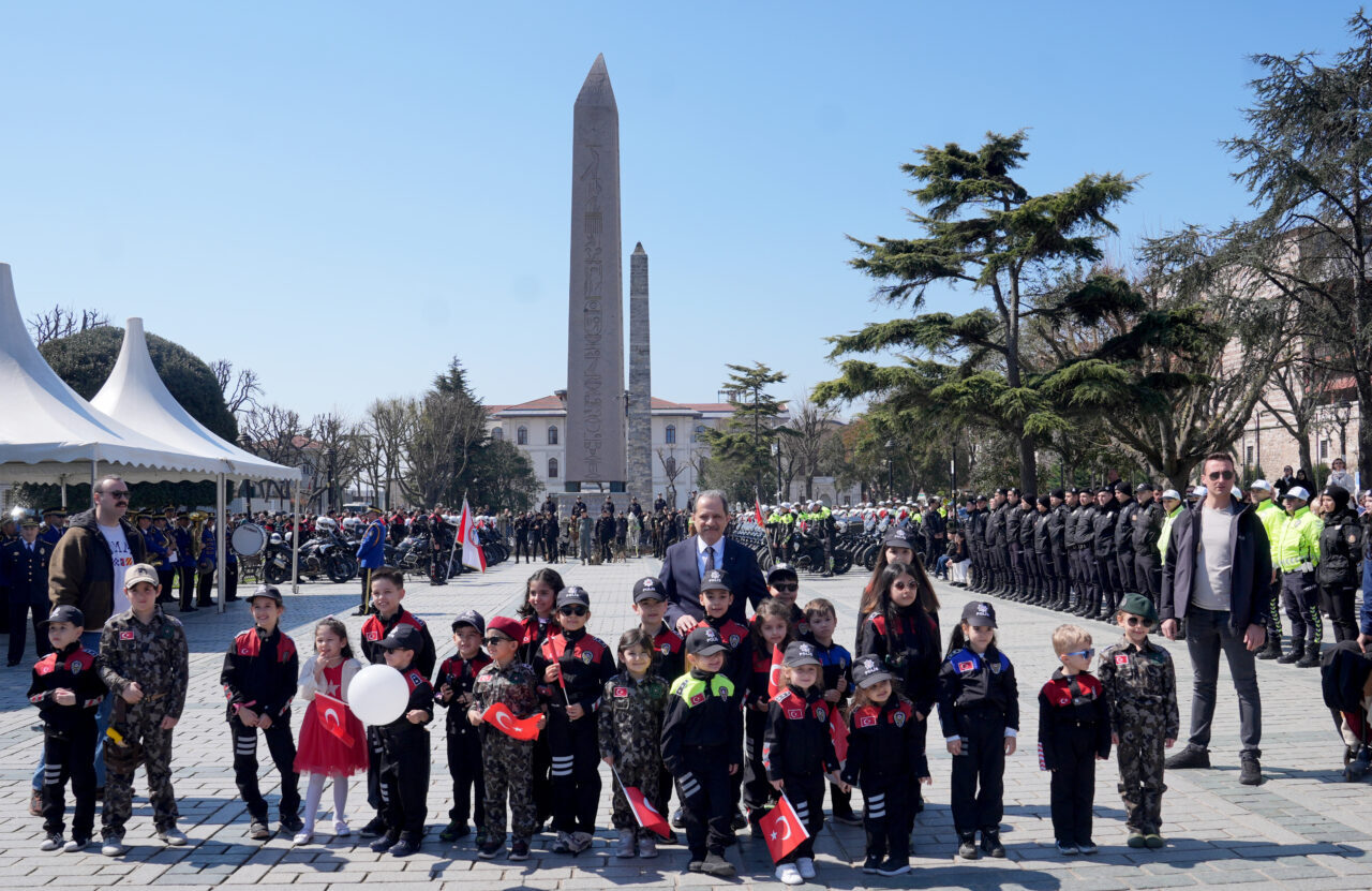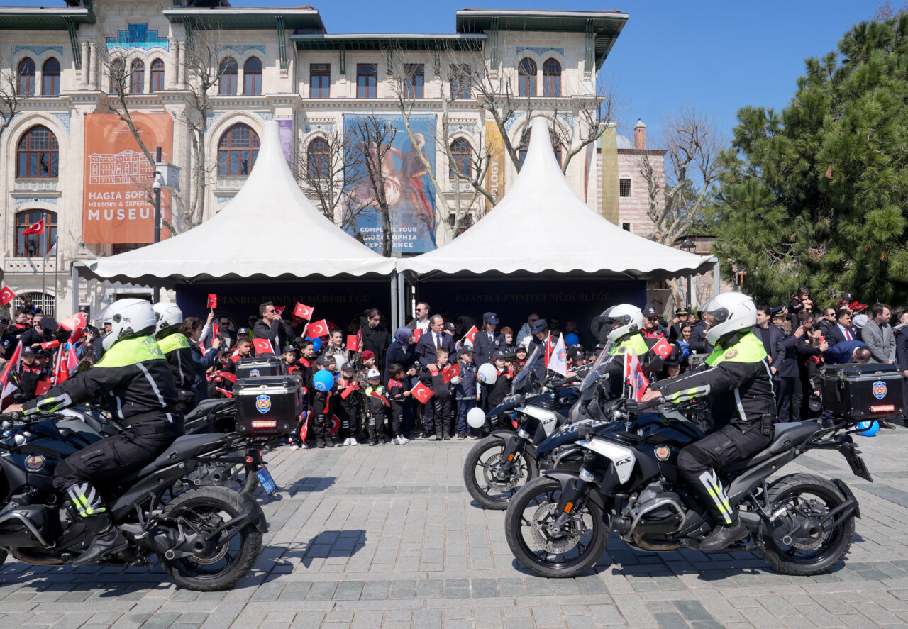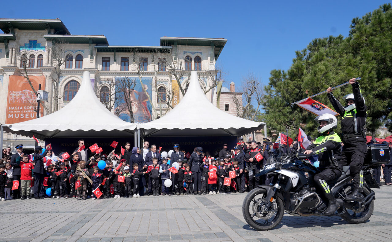 Konvoyun ulaştığı Ayasofya Meydanı'nda düzenlenen programda, bando takımı da marşlar çaldı. Programda, İstanbul İl Emniyet Müdürü Selami Yıldız, çocuklara çeşitli hediyeler verdi.
