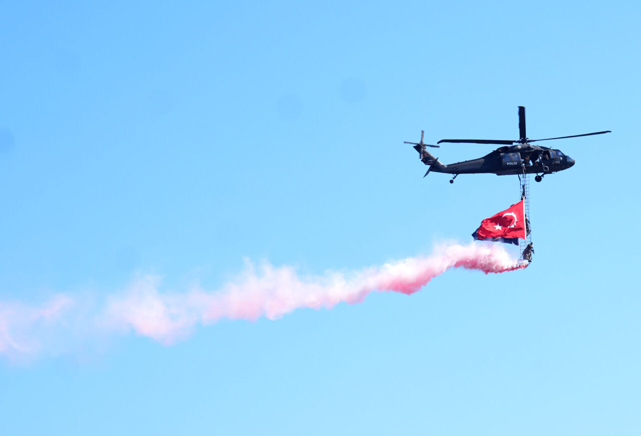 Tören sonunda motosikletli yunus polisleri, etkinliği izleyen vatandaşlar için gösteri yaptı.