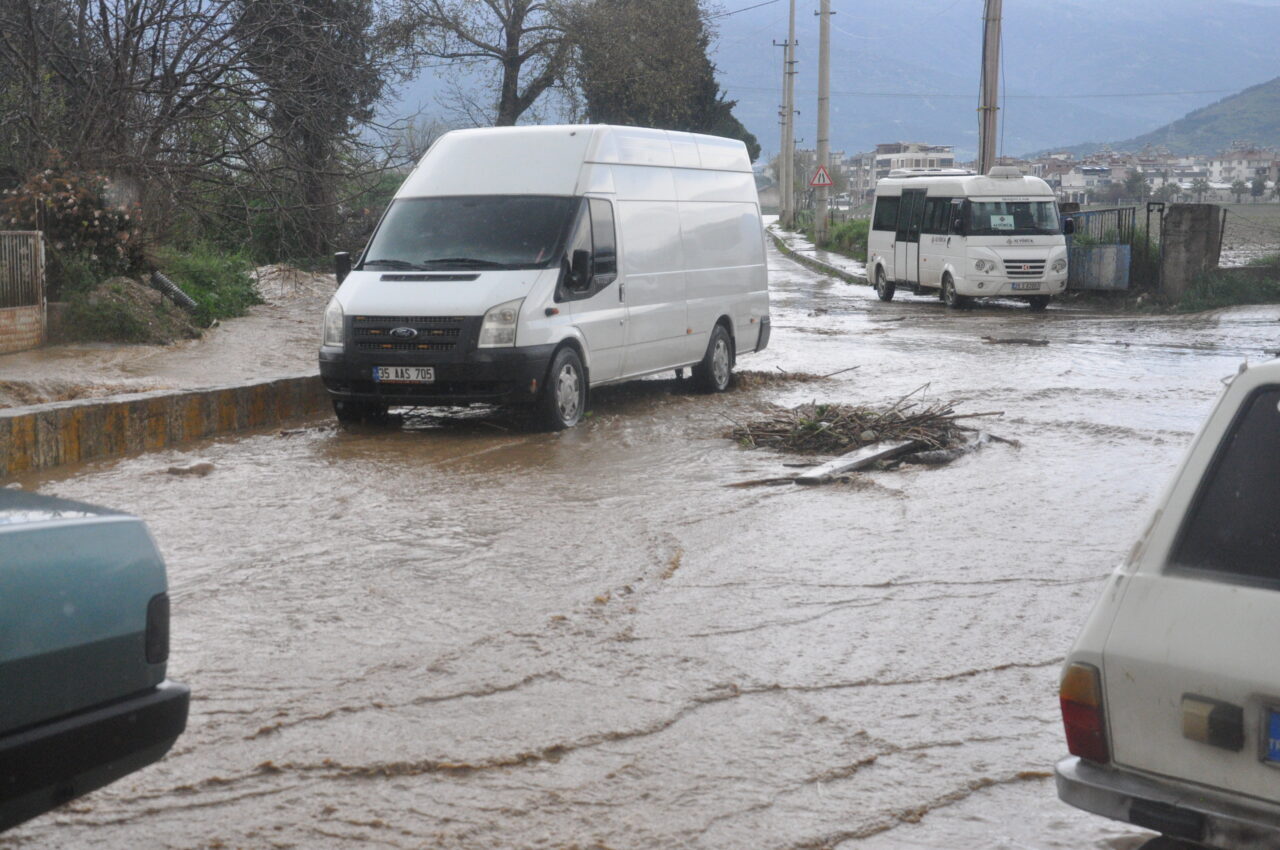 İZMİR (AA) – İzmir'in Ödemiş ilçesinde etkili olan sağanak nedeniyle bazı mahallelerde su birikintileri oluştu.