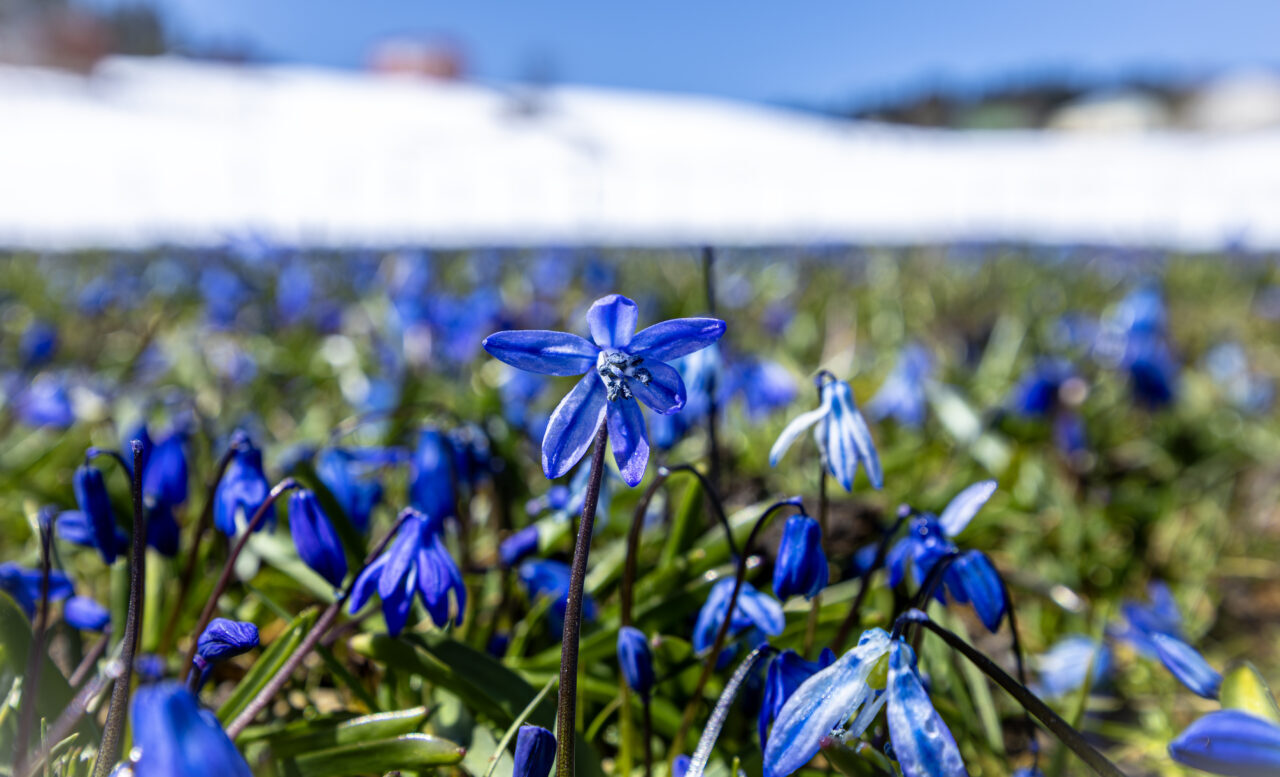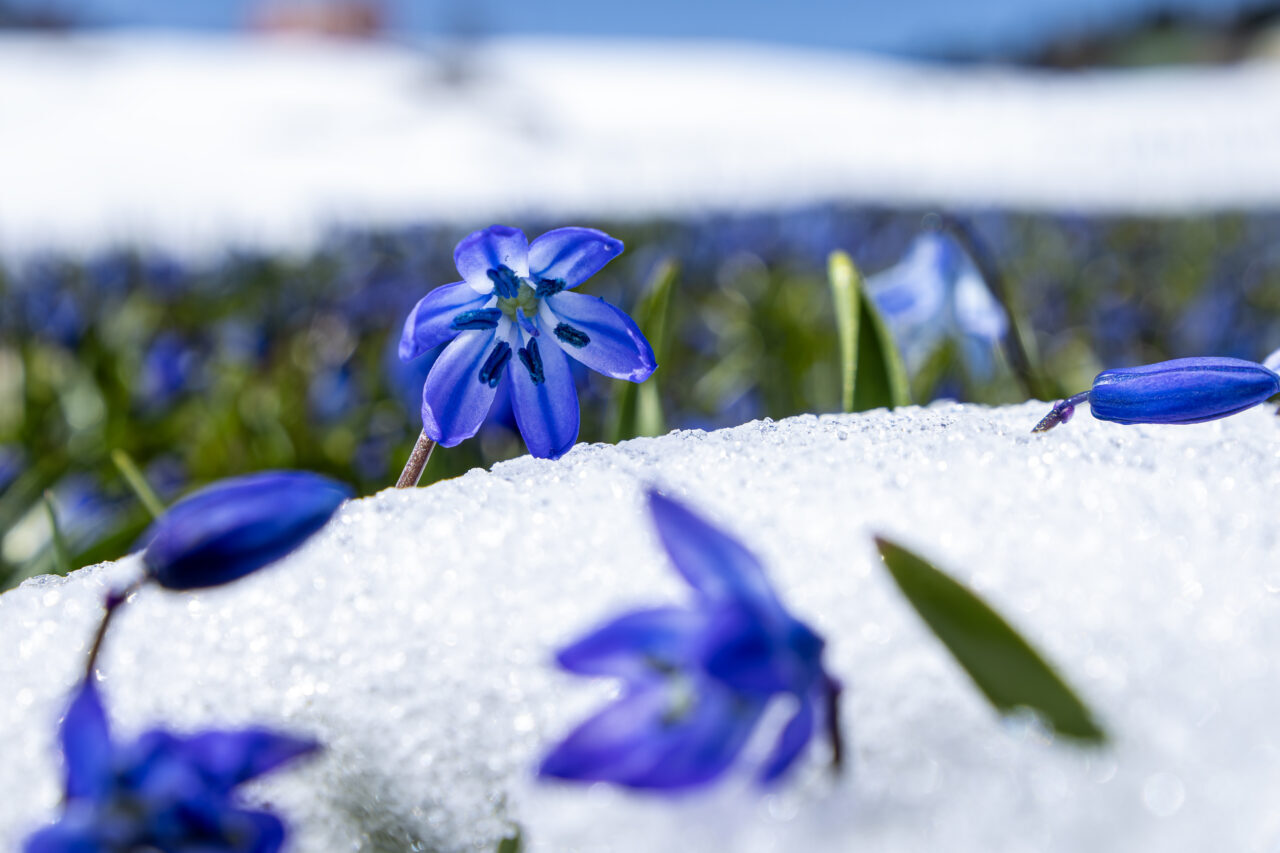 Nisanın ilk haftasından itibaren açmaya başlayan ve bir ay boyunca yaylayı adeta maviye boyayan çiçekler, bu sene kar altında kaldı.