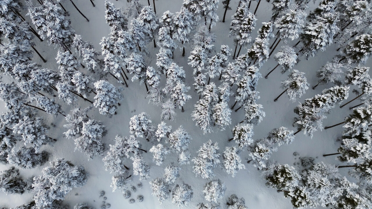 Sarıçam ormanlarıyla kaplı kayak merkezi ve Acısu bölgesinin beyaza bürünmüş sarıçam ağaçları dronla görüntülendi.