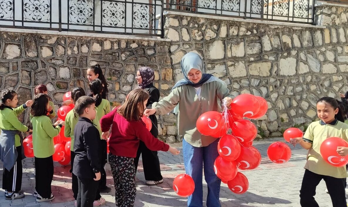 Yüz boyama ve el izi baskısı gibi etkinliklerin de yapıldığı programda çocuklara ay yıldızlı balonlar hediye edildi.
