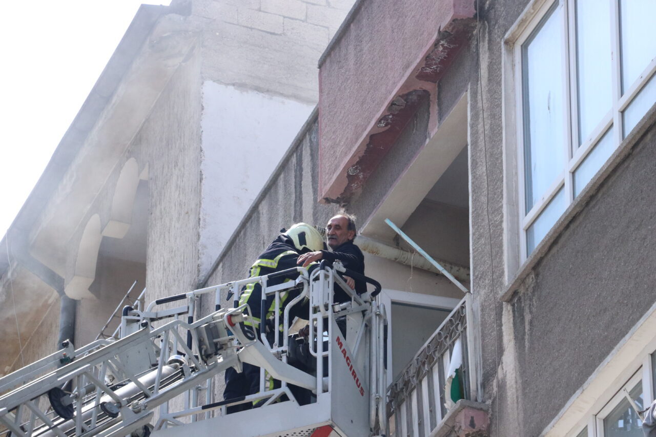 Evlerinde mahsur kalan bazı apartman sakinleri, itfaiye ekiplerince merdiven yardımıyla tahliye edildi.