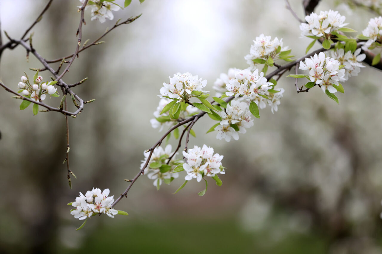 Havaların ısınması ve nisan yağmurlarıyla doğanın uyandığını belirten Gürses, özellikle armut ve elma bahçelerinin beyaza büründüğünü söyledi.