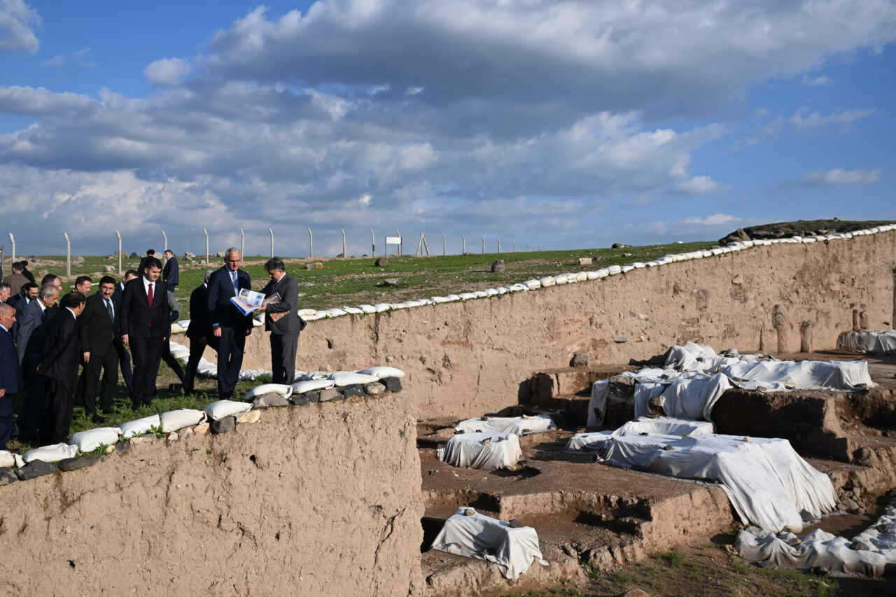 Bakan Ersoy, daha sonra Oylum Höyük'te incelemede bulundu, Kazı Başkanı Prof. Dr. Atilla Engin'den bilgi aldı.
