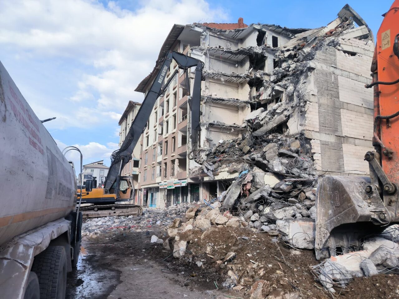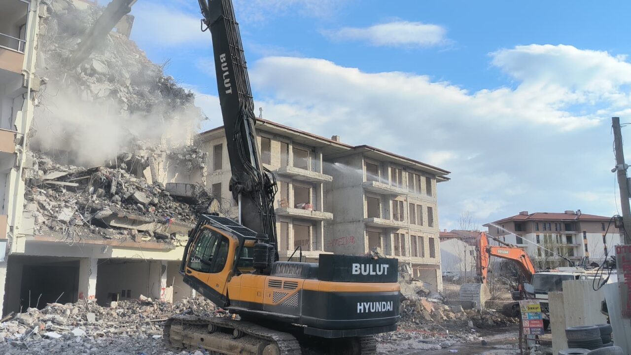 İlçede ağır hasarlı raporu verilen ancak mülkiyet sahiplerinin yürütmeyi durdurma talebiyle yargıya taşıdığı binalarla ilgili hukuki süreçlerin tamamlanmasının ardından yıkım ve enkaz kaldırma çalışmaları sürüyor.