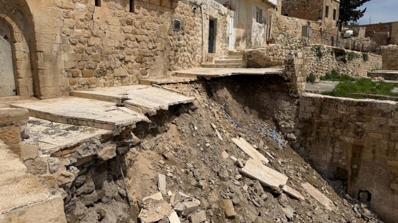MARDİN (AA) – Mardin'in merkez Artuklu ilçesinde yoğun yağış sonrası tarihi sit alanı içerisinde bulunan yolun bazı kısımlarında ve bir istinat duvarında çökme meydana geldi.